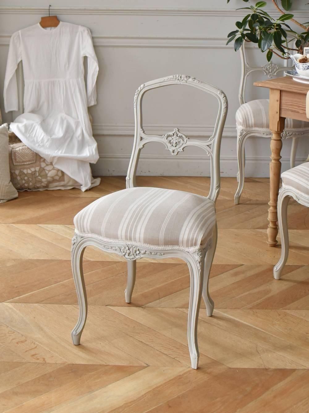 フレームは一度バラして組み直しを行っています。座面はアンティークファブリックを使用して新しく張り直し、中もウレタンに交換しているので程よい柔らかすぎない座り心地です。それぞれでの販売となりますが、同じデザインのアンティークチェア.があります。 W 約44cm