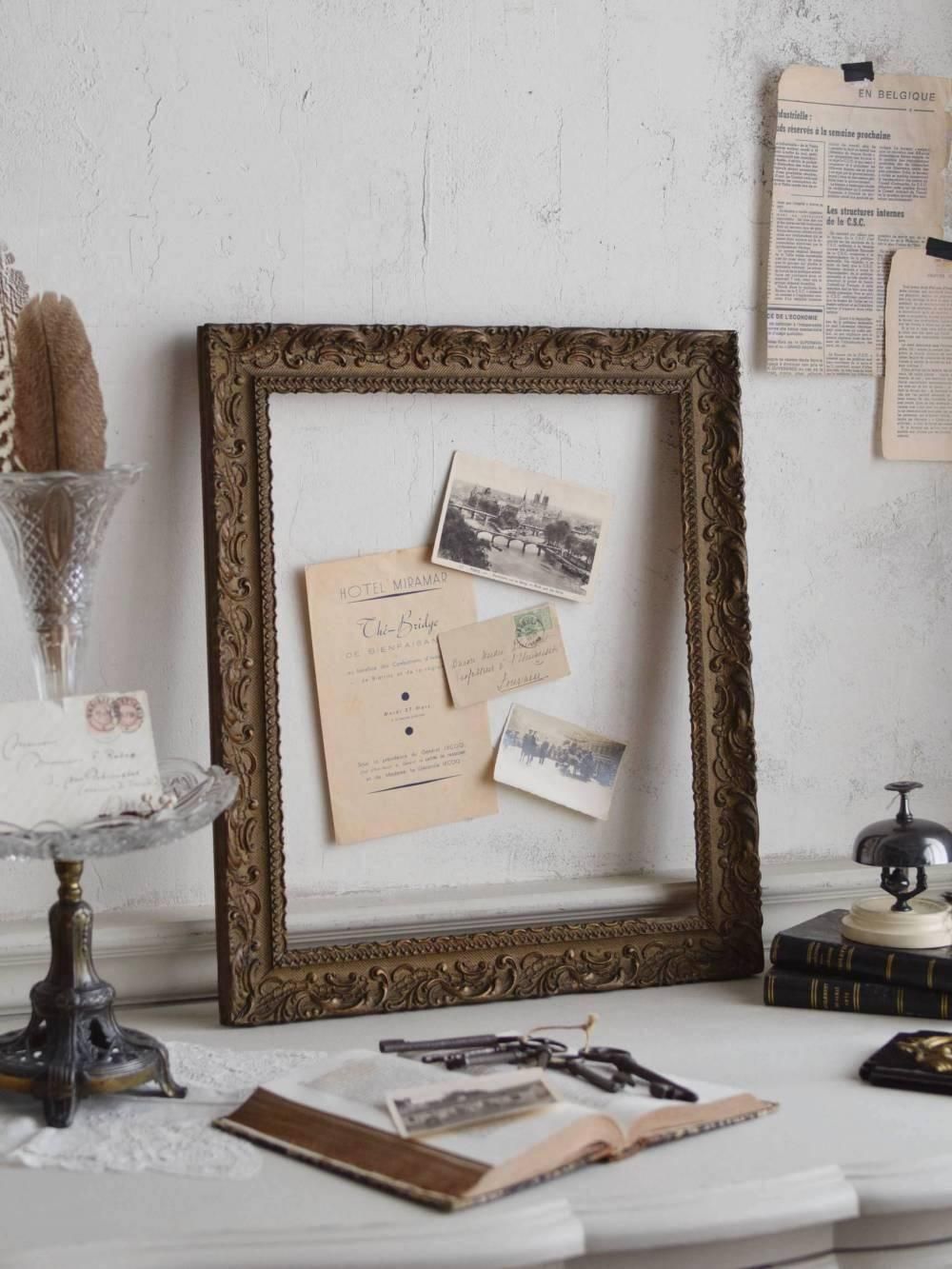深い味わいを持つフランスのフレーム。 幅は細めながらも、アカンサスの葉のようなデザインが繊細に描かれ、美しさがぎゅっと詰まっています。深みを帯びた暗めのゴールドカラーで、空間にシックで落ち着いた印象をもたらしてくれますね。 フレームのみで軽量となっていますので、コラージュなどをアレンジしたりと気軽に額装をお楽しみいただけます。ヒートンは1箇所のみついていますが、縦にも横にも使えるデザインで、平置きにして卓上のディスプレイにも活躍しそうです。 W 約44cm D 約2.5cm H 約51cm 内寸 W約33.5cm×H約41cm 重量 約0.7kg