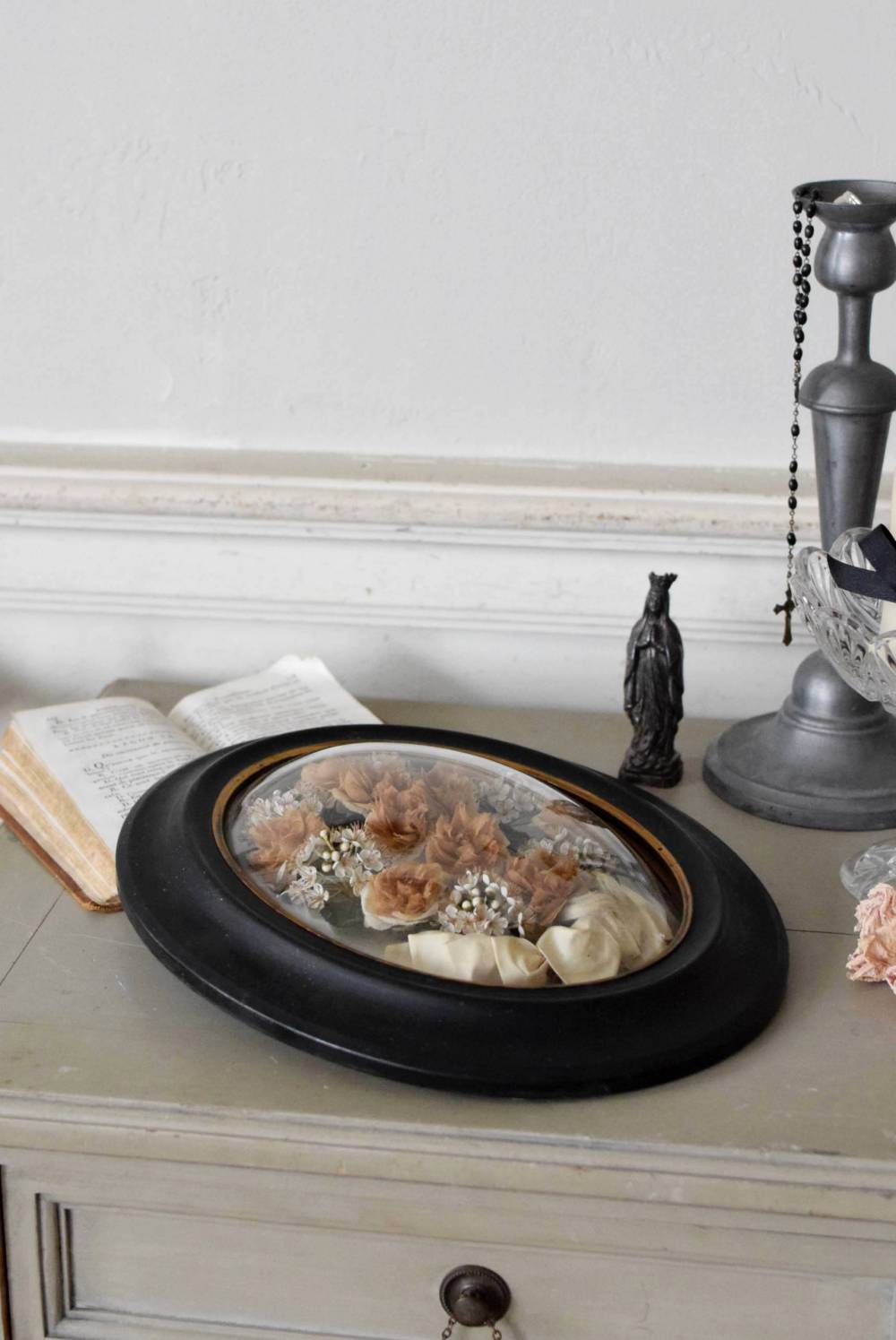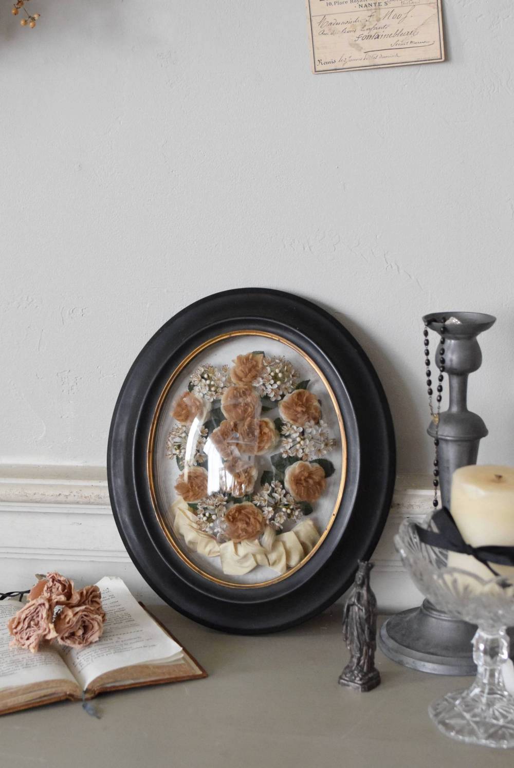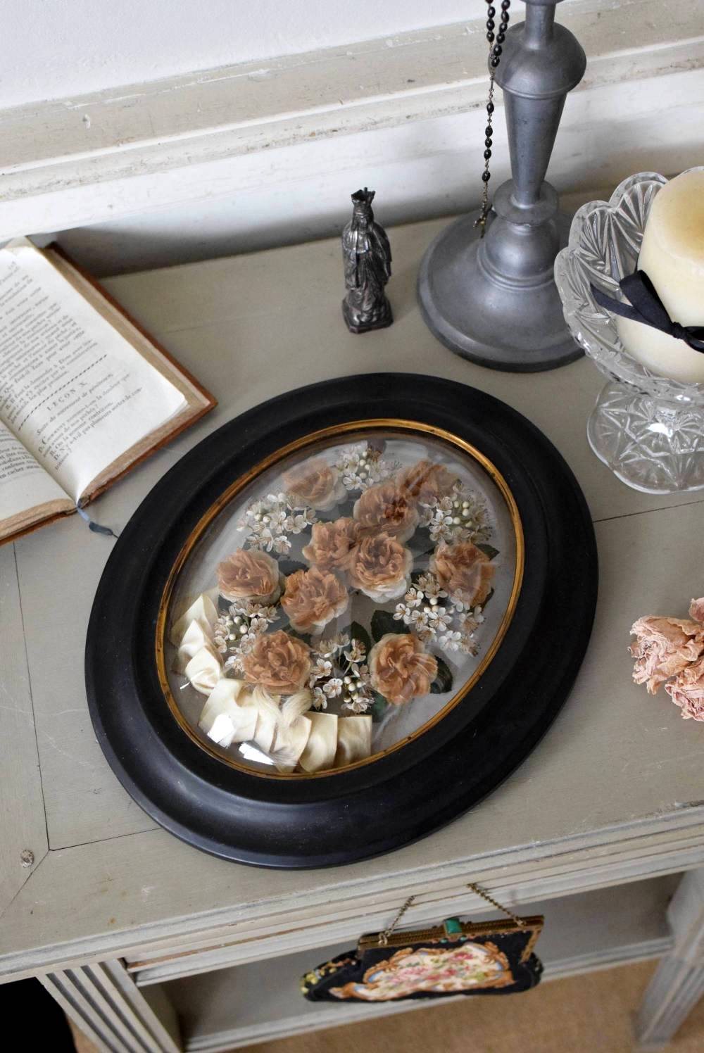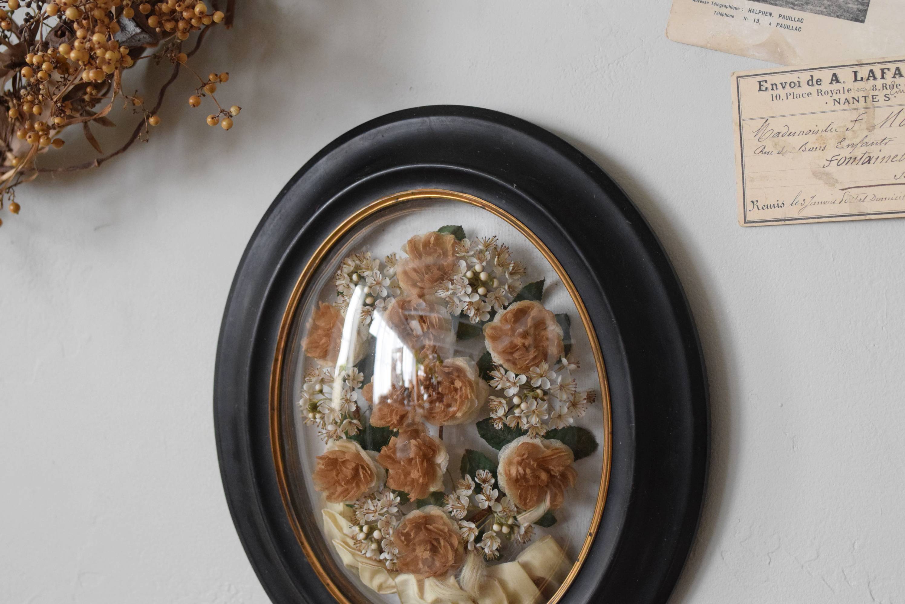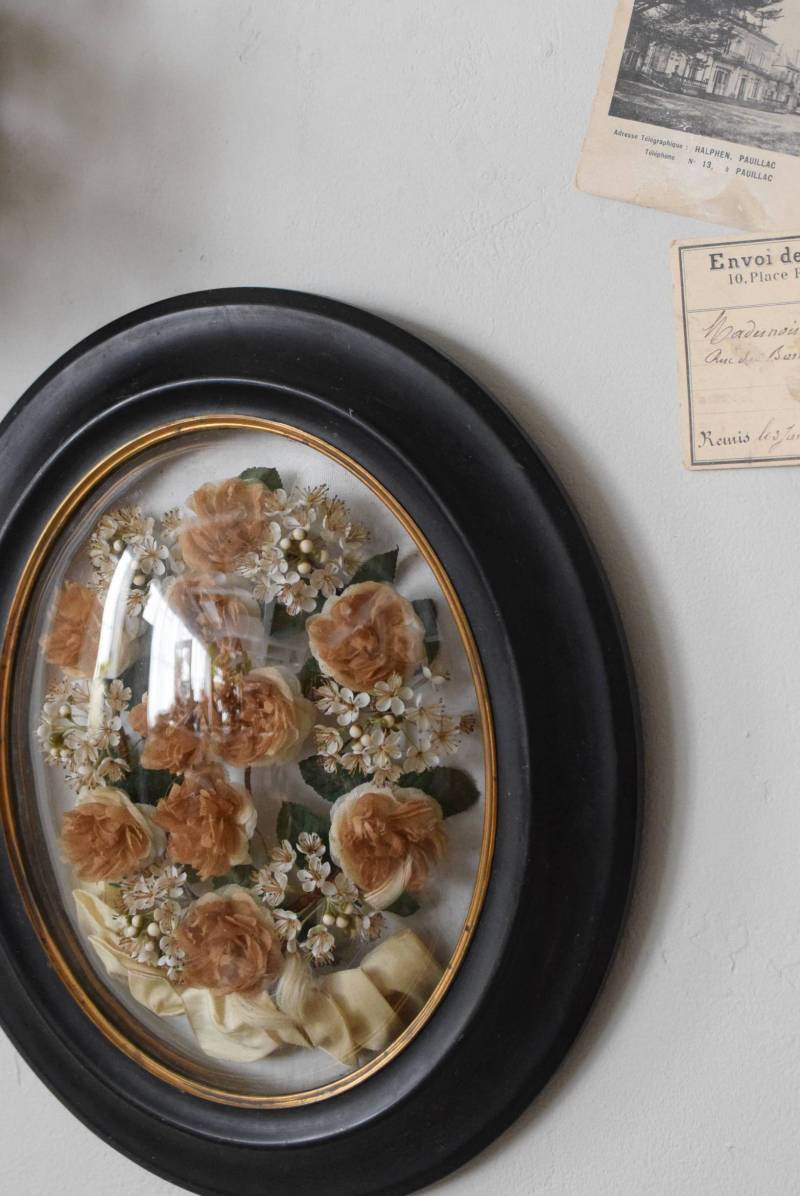 記念品をそっと閉じ込めたフランスのガラスドームフレーム。