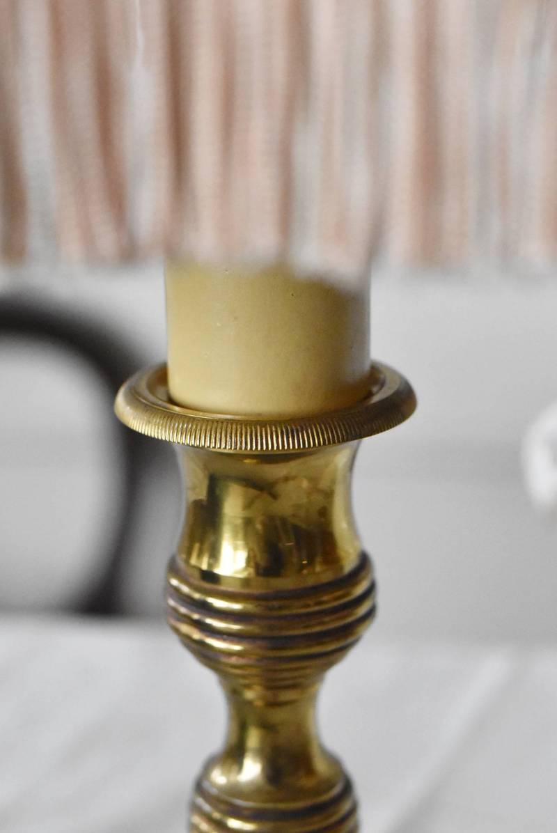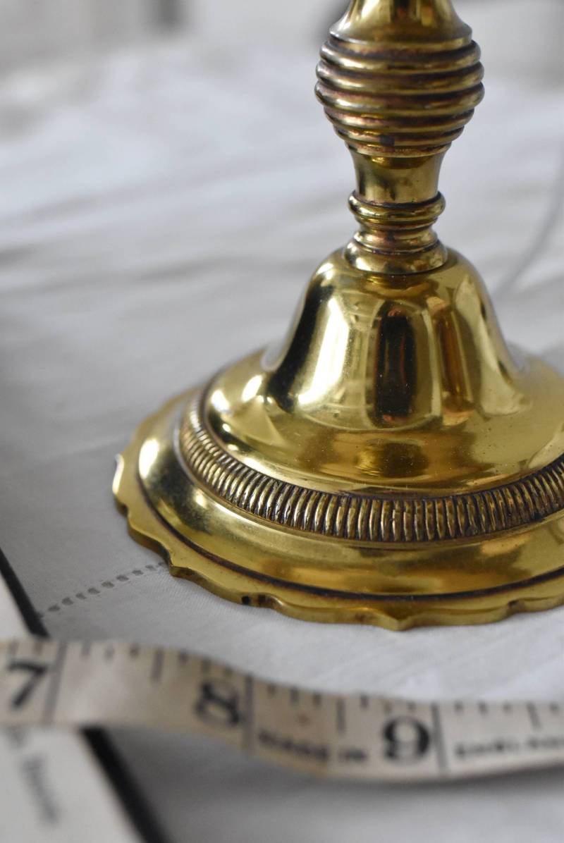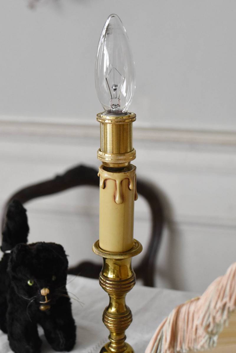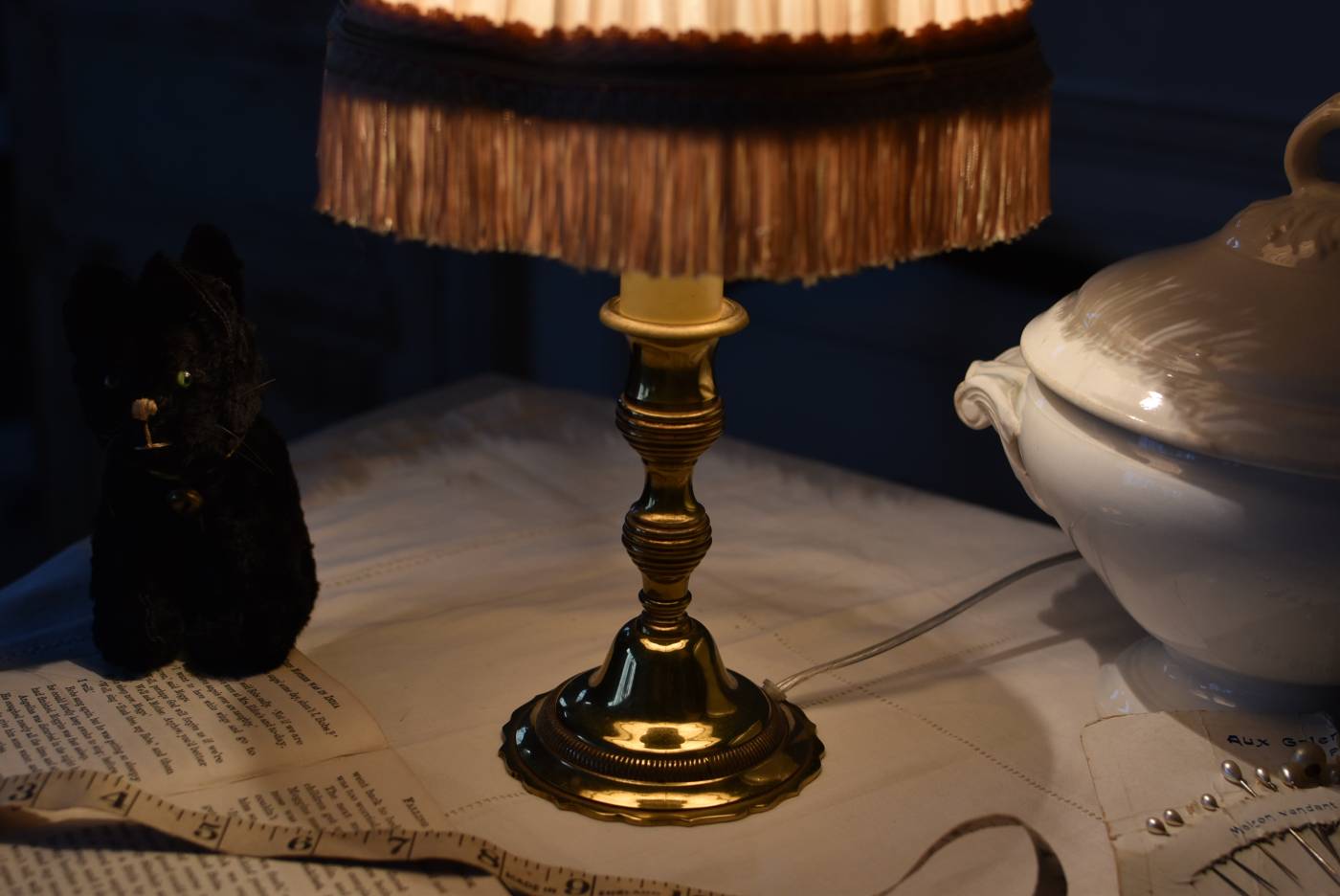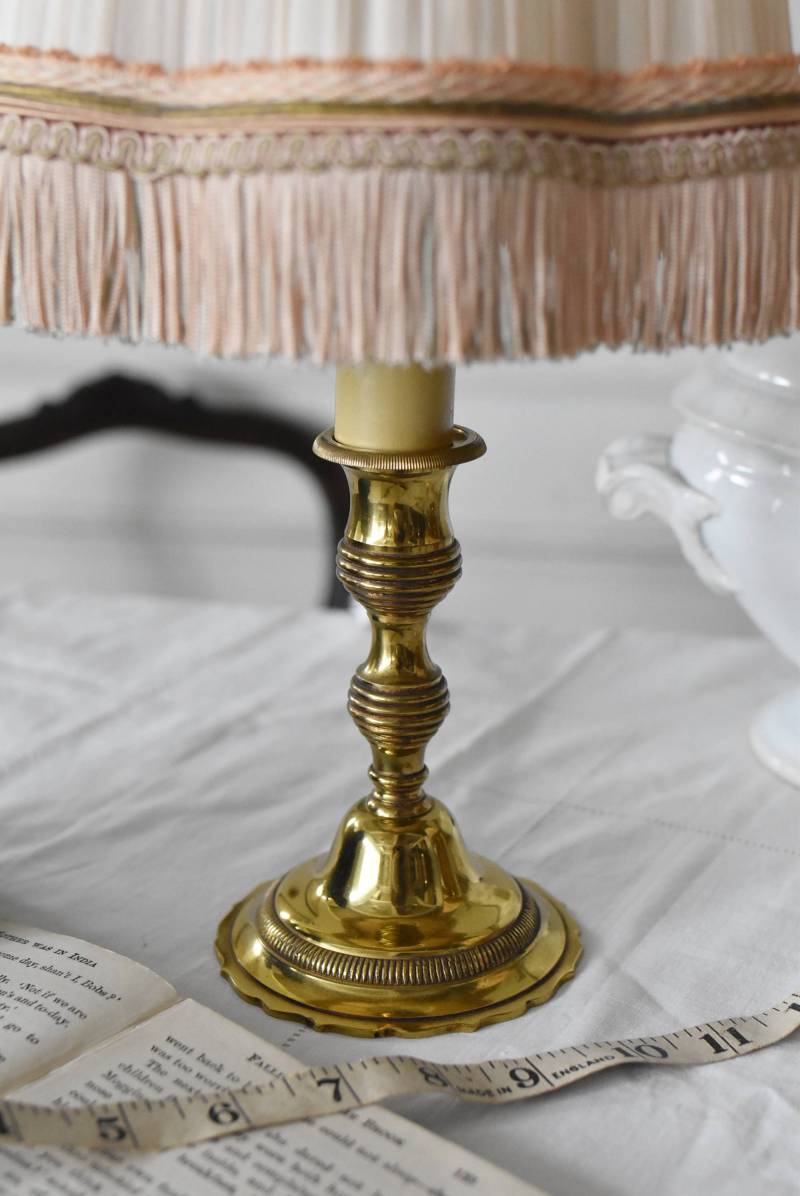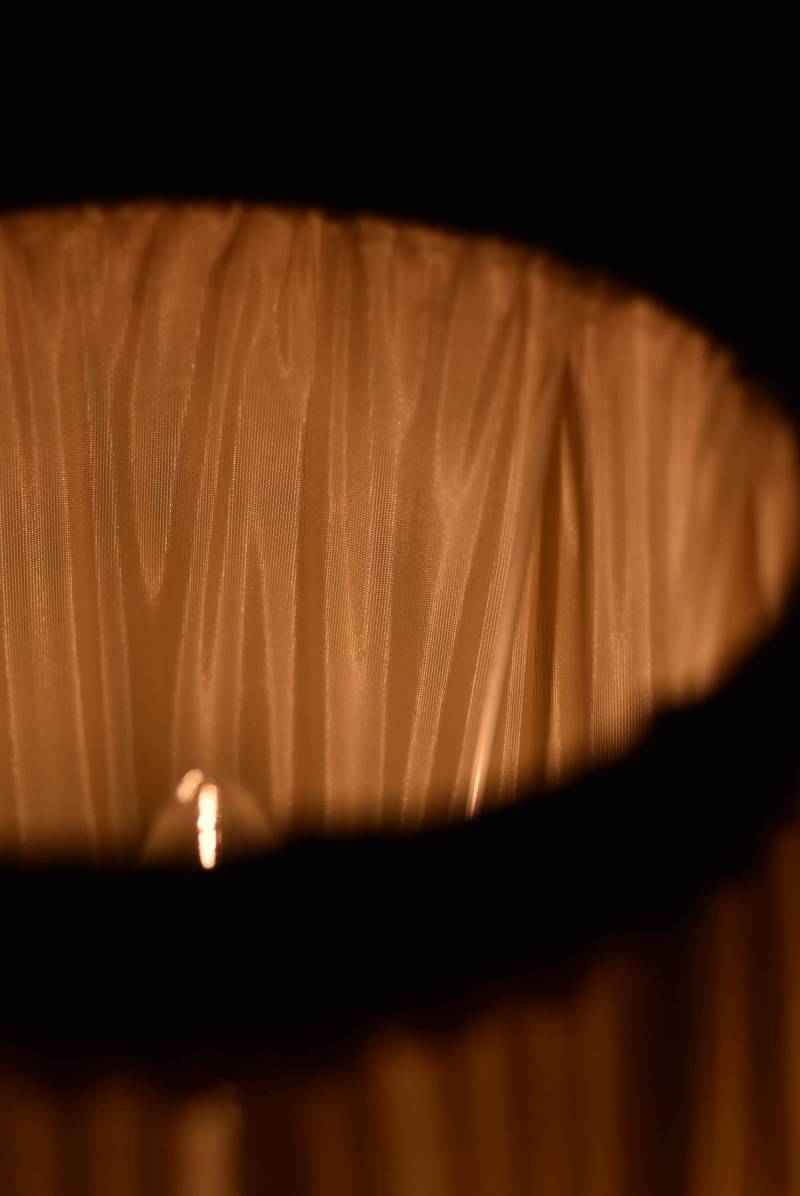フランスのテーブルランプ。 細やかなギャザーがあしらわれた柔らかな布地に、ピンクやグリーンなどの淡いカラーのリボンやフリンジが合わさったフェミニンな姿で光を優しく包み込んでくれます。凸凹としたシルエットにリングが重ねられたような真鍮製の土台も個性的で、艶やかなゴールドカラーとなった上品な佇まいです。 ソケット・コード・スイッチは新しい物に交換済みです。 電球は付属しません。それぞれでの販売となりますが、同じデザインのテーブルランプ.Bがあります。 直径 約21cm H 約37cm 土台直径 約10cm 電球口径 E17 *60W以下をご使用下さい。