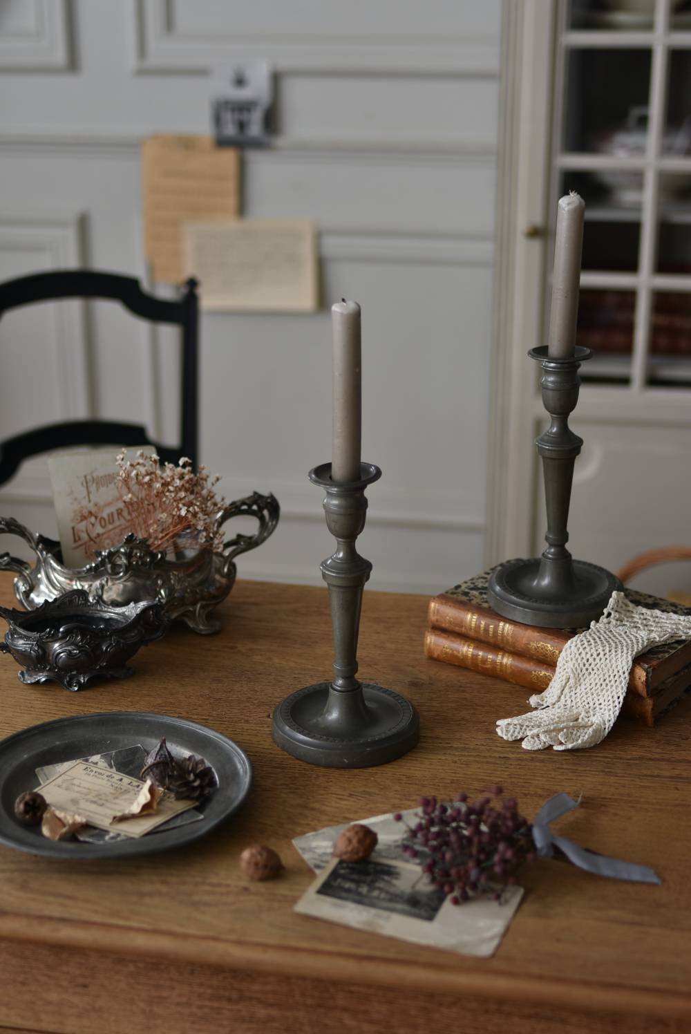 同じデザインのキャンドルスタンドとシンメトリーに飾っても素敵で、クラシカルなディスプレイを楽しめそうです。