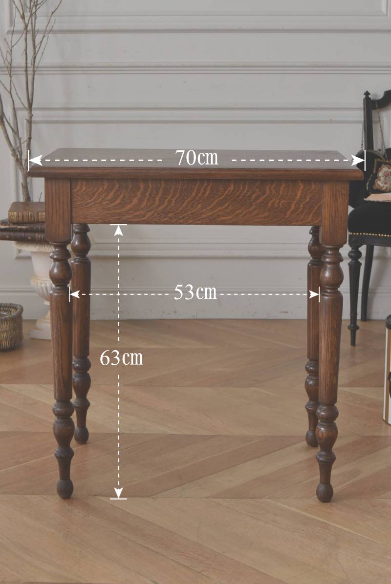 大きすぎないサイズなので作業用のデスクや花台などサイドテーブルとして幅広いシーンで活躍してくれます。艶やかな質感となった程よい重厚感も漂います。 W 約70cm