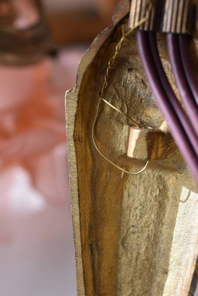 撮影時は穴にワイヤーを通してビスに引っ掛けて壁に固定しています。