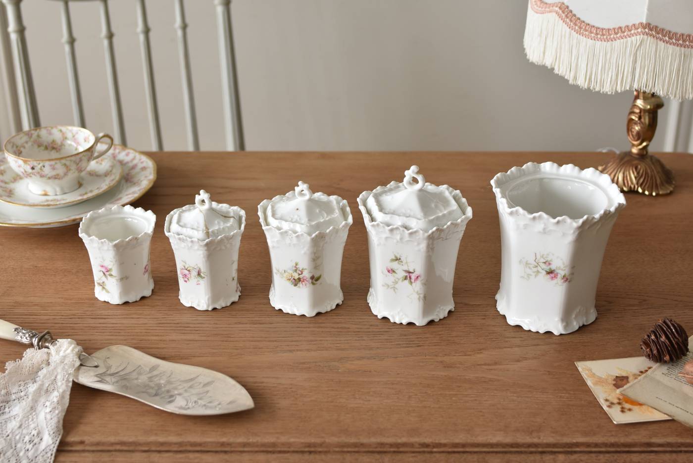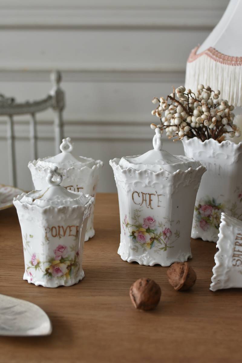 可憐な雰囲気漂うフランスのキャニスター5点セット。