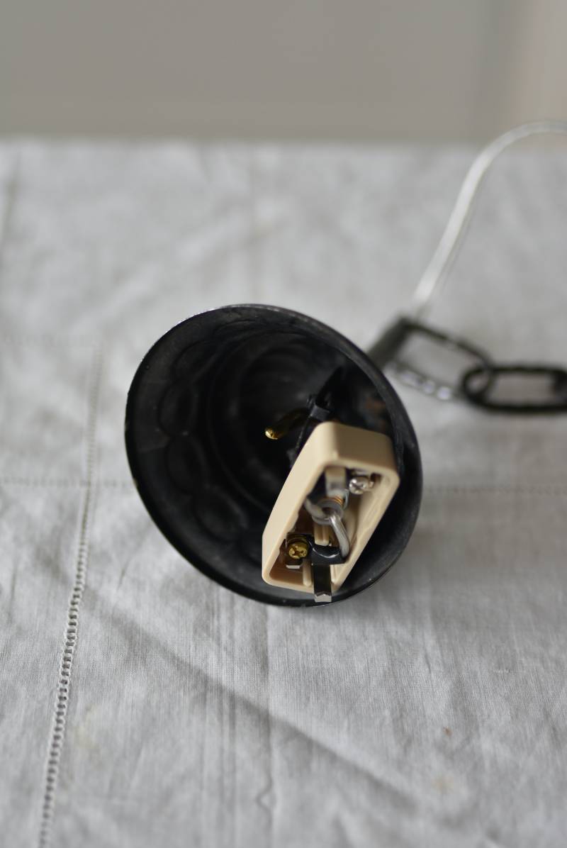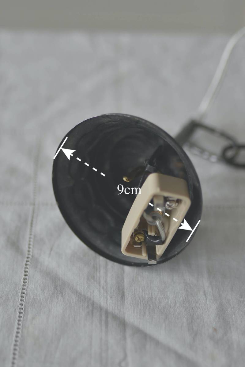コード・ソケット・シーリングは新しいものに交換済み。こちらの商品は条件を満たしているので引掛シーリングをご使用いただけます。元は直付けで使われていた物で天井カバーが浅い為、天井との間に隙間ができます。天井との隙間が気になられる方は直付け工事をおすすめします。