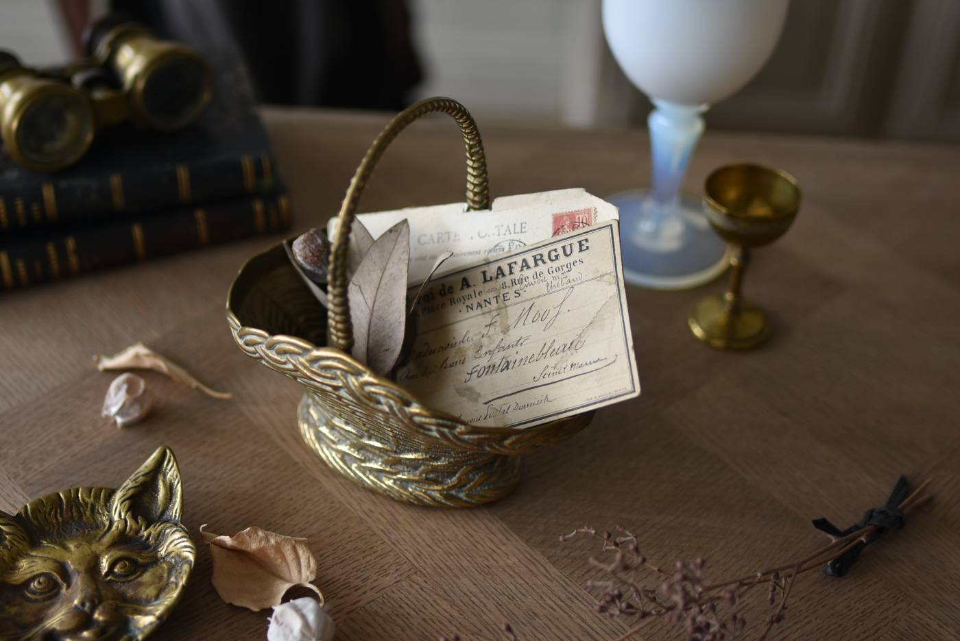 フランスのバスケット型小物入れ。