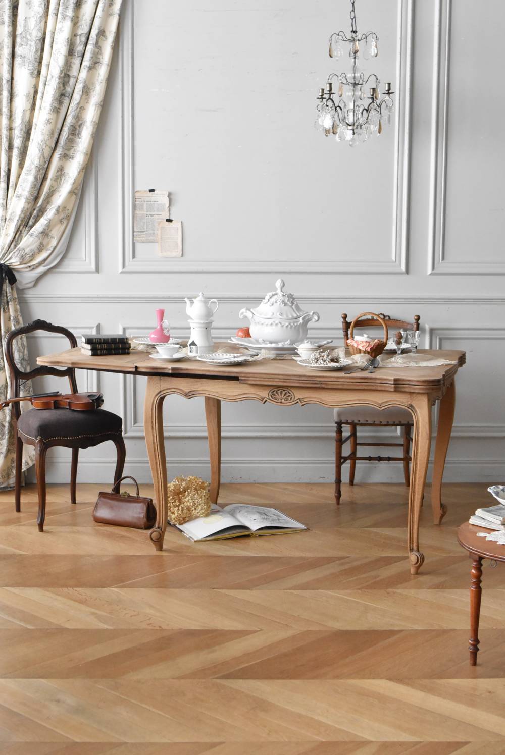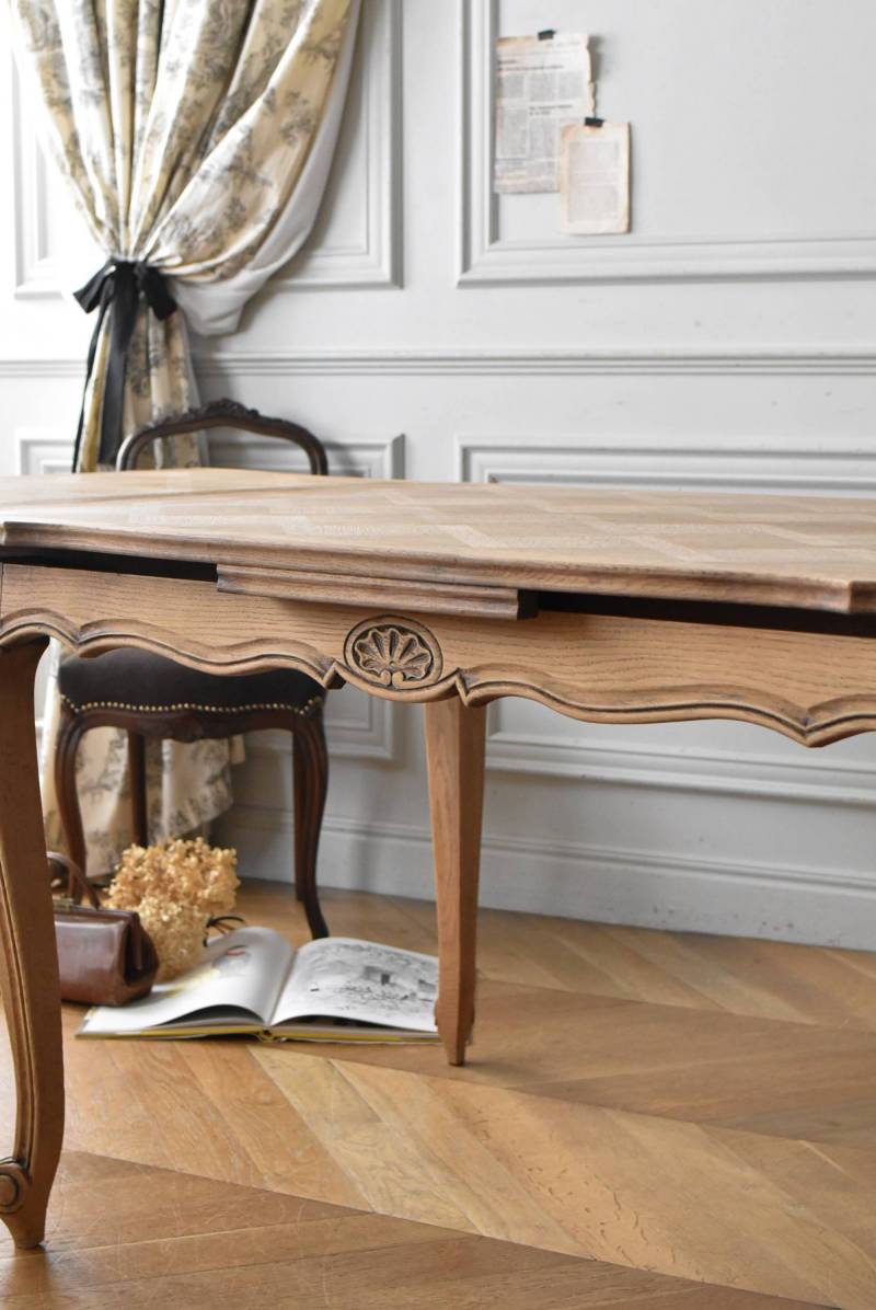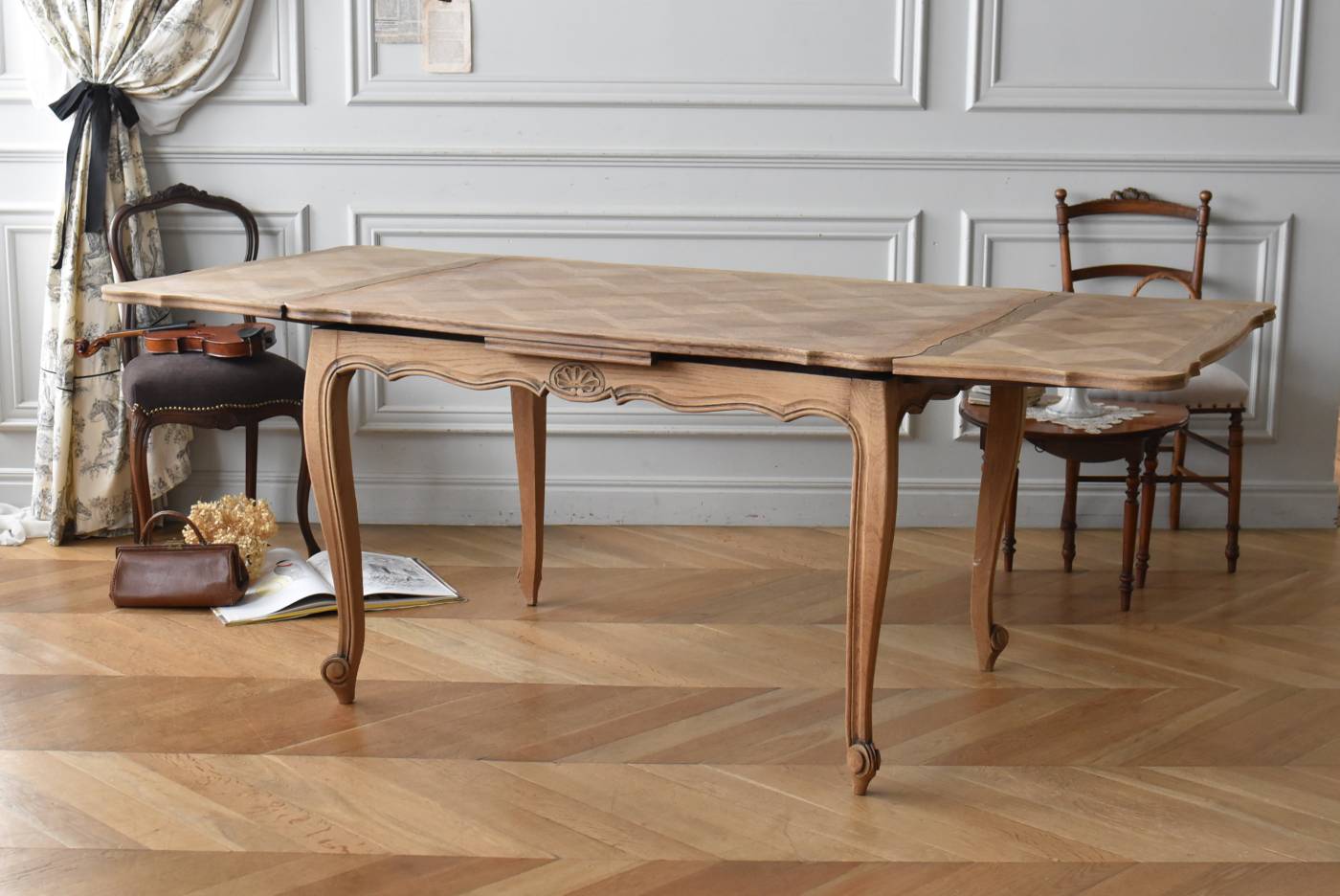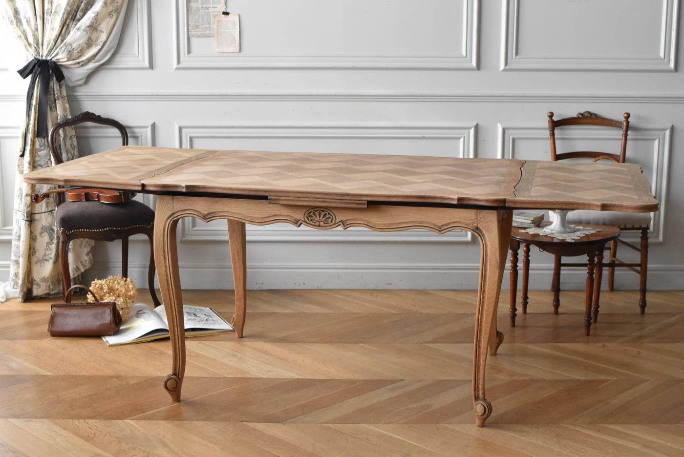 サイドから天板を引き出し拡張する事ができるフランスの伸縮テーブル。