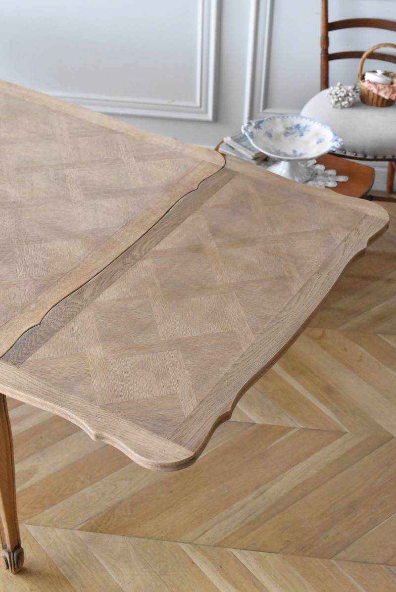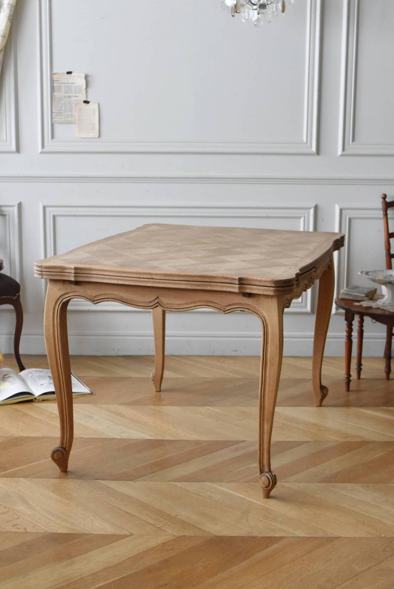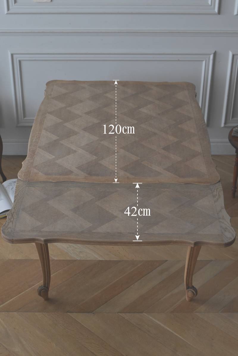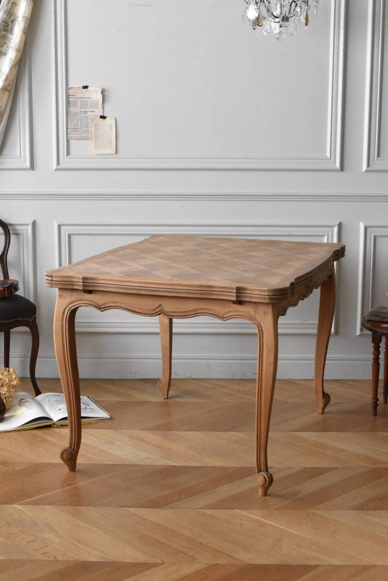 サイドから天板を引き出し拡張する事ができるフランスの伸縮テーブル。