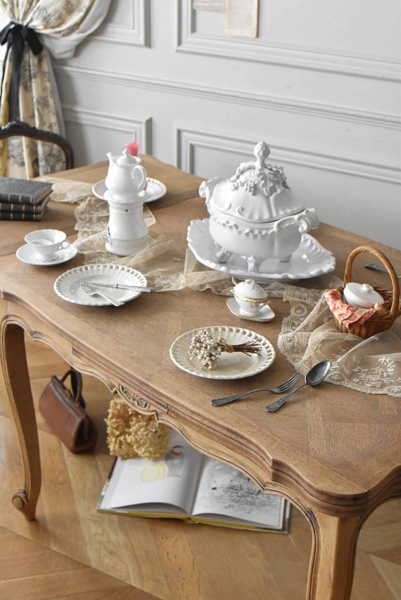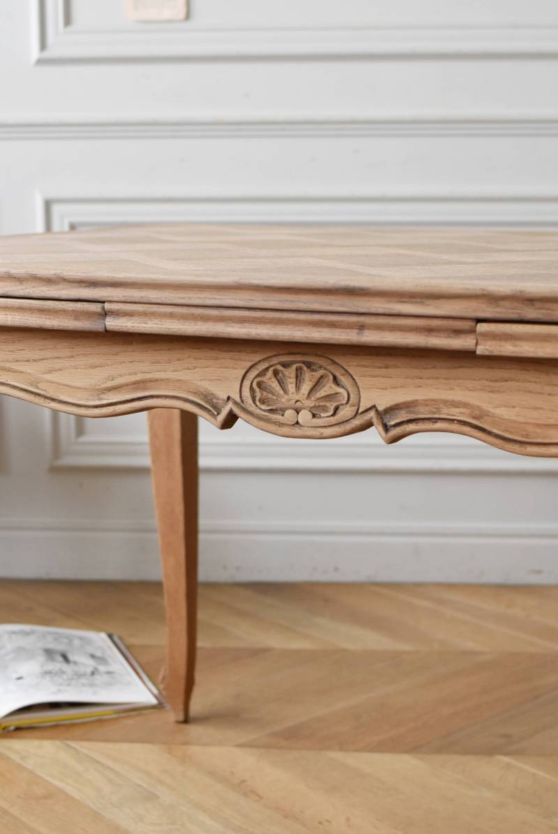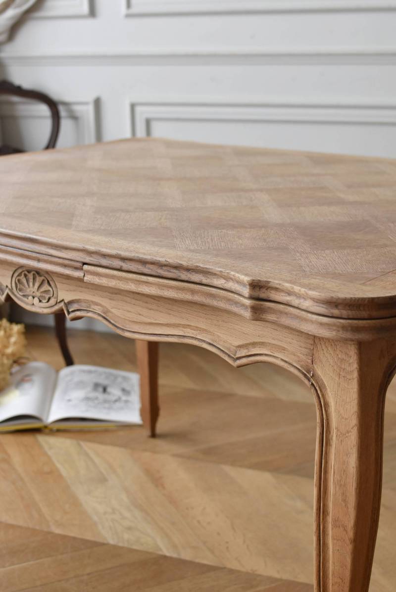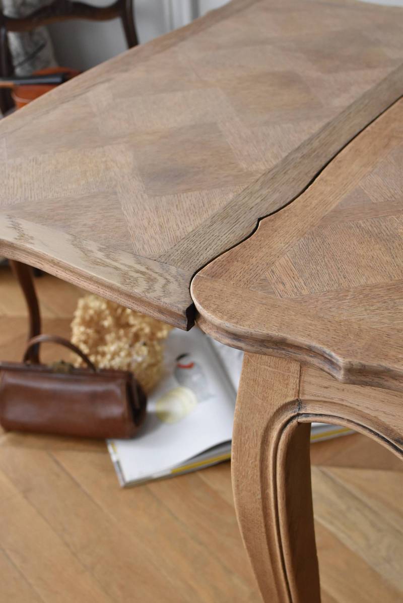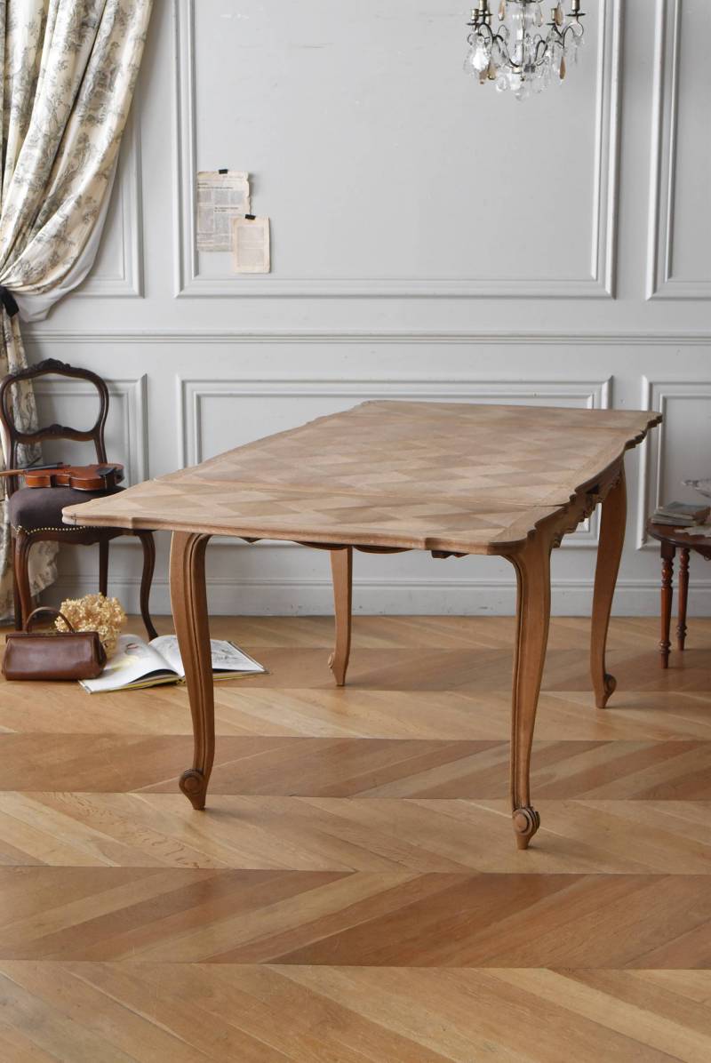サイドから天板を引き出し拡張する事ができるフランスの伸縮テーブル。