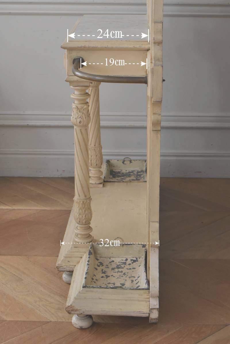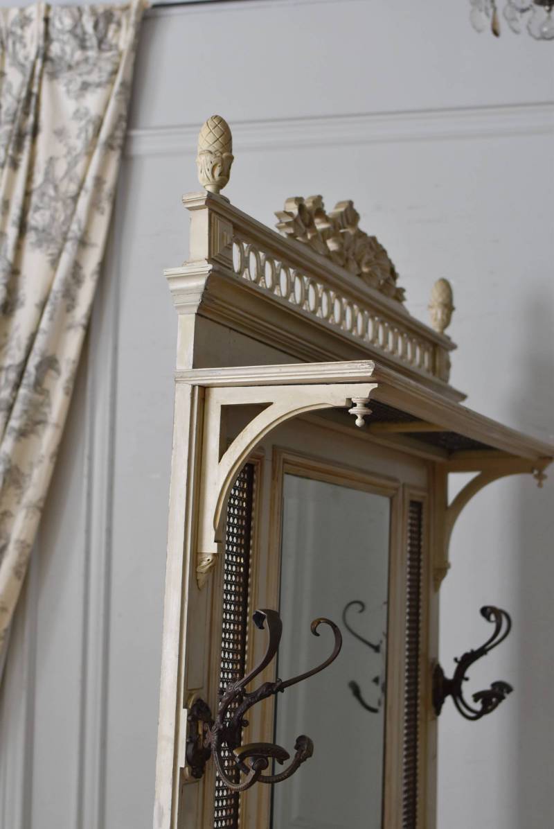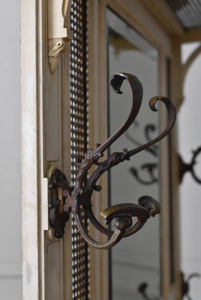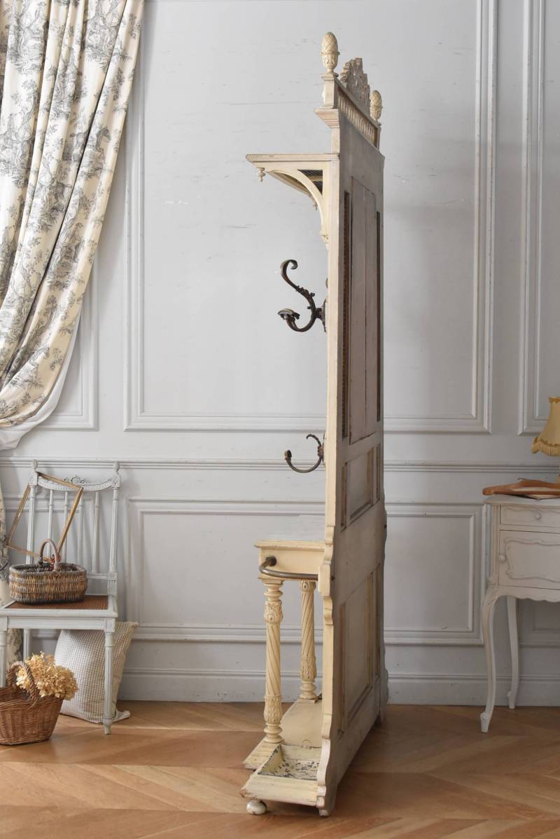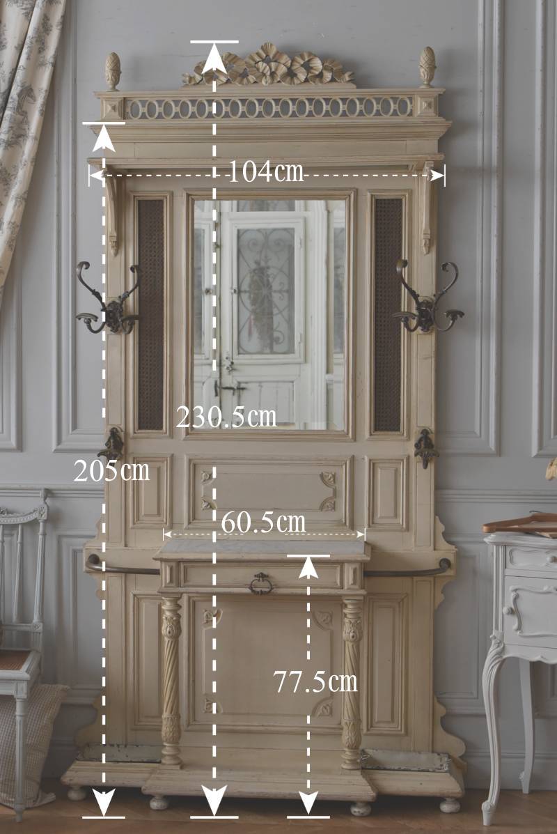 ¥³¡¼¥È¤ò³Ý¤±¤¿¤ê¡¢»±¤ä¥¹¥Æ¥£¥Ã¥¯¤ò¼ý¤á¤ë»ö¤¬½ÐÍè¤ëµ¡Ç½Åª¤Êºî¤ê¤Ë¤Ê¤Ã¤¿¥Õ¥é¥ó¥¹¡¦19À¤µª¸åȾ¤Î¥Û¡¼¥ë¥¹¥¿¥ó¥É¡£ ÇÈÂǤĤ褦¤ÊÂ礤ʥê¥Ü¥óÁõ¾þ¤ä¥ª¡¼¥Ð¥ë·¿¤Ë¤¯¤êÈ´¤«¤ì¤¿Ï¢Â³ÌÏÍͤ¬¥È¥Ã¥×¤Ë»Ü¤µ¤ì¡¢Ã¸¤¤¥¯¥ê¡¼¥à¥«¥é¡¼¤È¤Ê¤Ã¤¿Í¥¤·¤²¤ÊÊ·°Ïµ¤¤òÅ»¤Ã¤Æ¤¤¤Þ¤¹¡£Ä¾ÀþŪ¤Ê¥â¡¼¥ë¥Ç¥£¥ó¥°¤Ë¤è¤Ã¤Æ¤¹¤Ã¤¤ê¤È¸«¤»¤Ê¤¬¤é¤â¡¢²¼Éô¤ÎÁ°Ì̤ˤÏDZ¤ê¤ò²Ã¤¨¤é¤ì¤¿»ÙÃì¥Ç¥¶¥¤¥ó¤â¤³¤À¤ï¤êÈ´¤«¤ì¤¿»Ñ¤¬³Ú¤·¤á¤ë¥¤¥ó¥Ñ¥¯¥È¤Î¤¢¤ëÐʤޤ¤¤Ç¤¹¡£ ¥«¥Ã¥È¥Ç¥¶¥¤¥ó¤Ç±ï¼è¤é¤ì¤¿¥ß¥é¡¼¤â¸Å¤¤¤â¤Î¤Ç¤¹¤Î¤Ç¥·¥ß¤äºÙ¤ä¤«¤Ê½ý¤Ê¤É¤Ï¸«¼õ¤±¤é¤ì¤Þ¤¹¤¬¡¢ÏĤߤʤɤϤʤ¯¼ÂÍѤȤ·¤Æ¤ª»È¤¤¤¤¤¿¤À¤±¤ëÈϰϤ«¤È»×¤¤¤Þ¤¹¡£¥È¥Ã¥×Áõ¾þ¤Ï¼è¤ê³°¤·¤¬½ÐÍè¡¢¥À¥Ü(ËÀ¾õ¤Î¤â¤Î)¤Ç¤Ï¤á¹þ¤à¹½Â¤¤Ç¤¹¡£ ¼«Î©¤Ï¤·¤Þ¤¹¤¬¡¢¤·¤Ã¤«¤ê¤ÈÊɤ˸ÇÄꤷ¤Æ¤´»ÈÍѤ¯¤À¤µ¤¤¡£Êɤ˼è¤êÉÕ¤±¤ë¶â¶ñ¤ÏÉÕ°¤·¤Æ¤¤¤Þ¤»¤ó¤Î¤Ç¡¢Êɺà¤Ë¹ç¤Ã¤¿¼è¤êÉÕ¤±¶â¶ñ¤ò¤´ÍѰդ¯¤À¤µ¤¤¡£ ÌÚÏȤòÁȤó¤ÇȯÁ÷¤¹¤ë¤¿¤á¡¢¤ªÆÏ¤±¤Þ¤Ç¤Ë¤ªÆü¤Ë¤Á¤òĺÂפ¹¤ë¾ì¹ç¤¬¤´¤¶¤¤¤Þ¤¹¡£ W Ìó124cm D Ìó32cm H Ìó230.5cm(¾åÉôÁõ¾þ¤ò³°¤·¤¿H Ìó205cm) ¾åÉôêÈÄ WÌó104cm¡ßDÌó25cm °ú¤½Ð¤·ÆâÀ£ WÌó44.5cm¡ßDÌó20.5cm¡ßHÌó6.5Ñ ÀФÎÅ·ÈĤޤÇH Ìó77.5Ñ ¥ß¥é¡¼ÌÌÀÑ WÌó46cm¡ßHÌó70cm ÈÂÆþ·ÐÏ©¤Ë¤Ä¤¤¤Æ ¤³¤Á¤é¤Î¾¦ÉʤÎÇÛÁ÷¤Ë¤Ä¤¤¤Æ