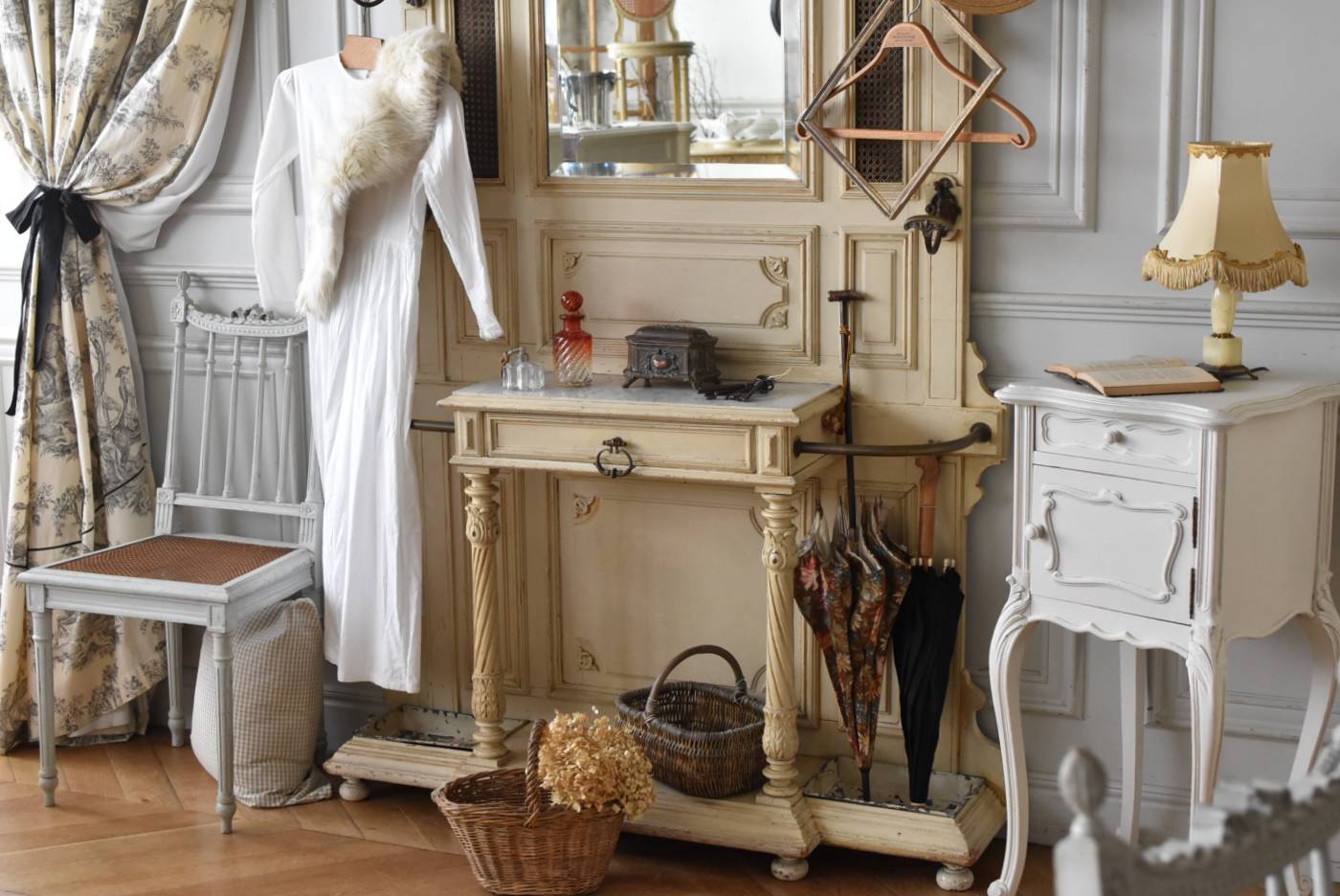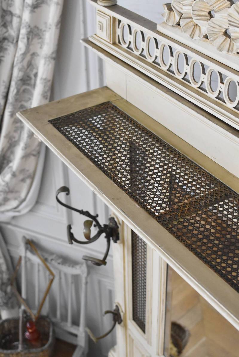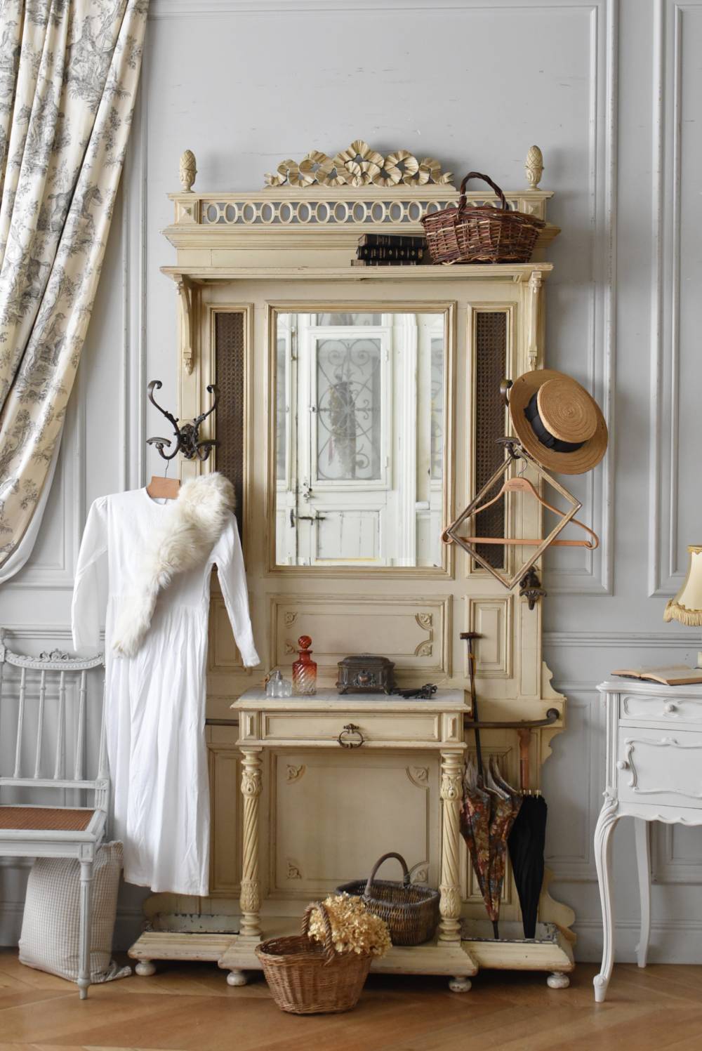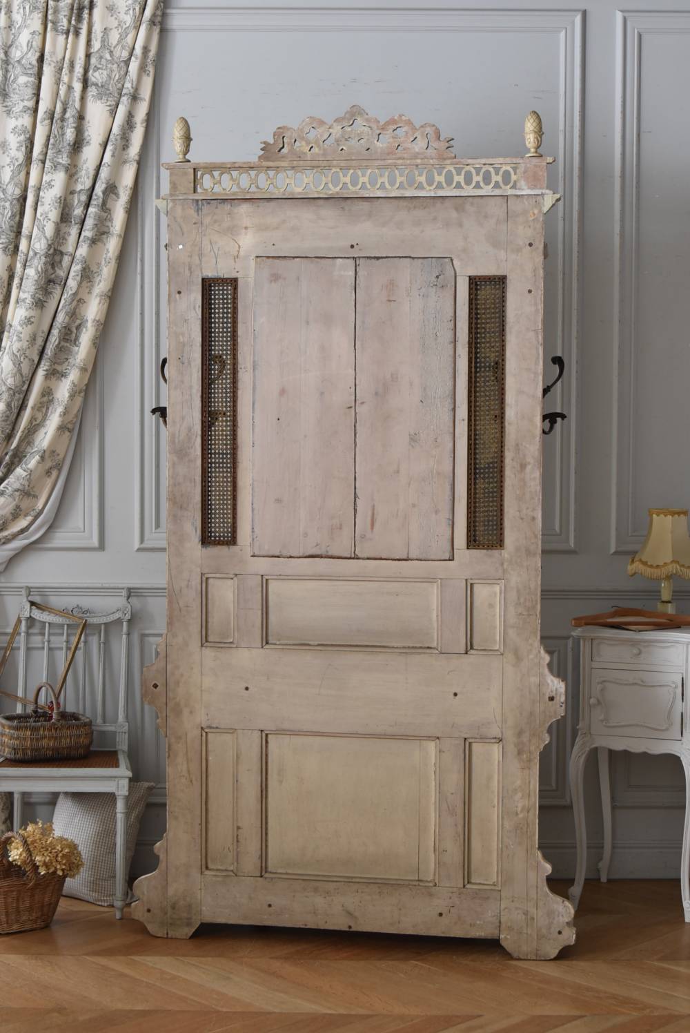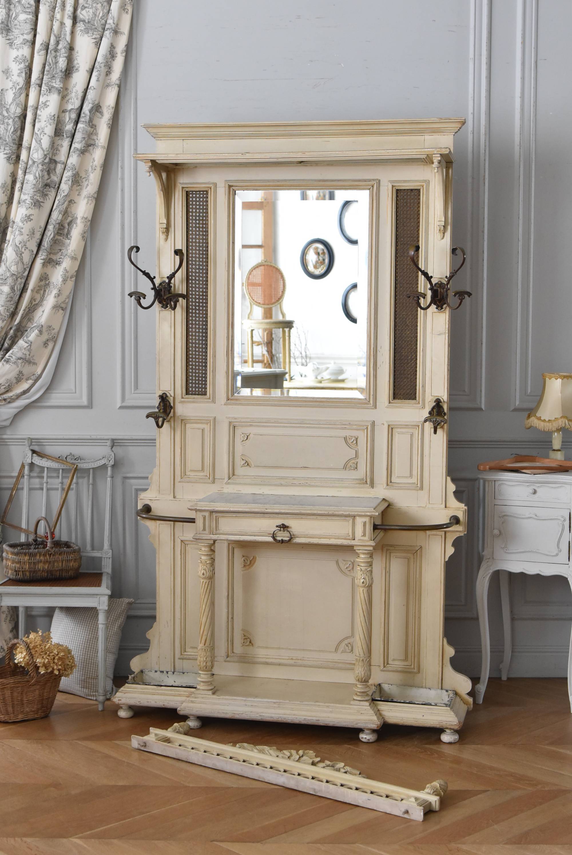 ¥³¡¼¥È¤ò³Ý¤±¤¿¤ê¡¢»±¤ä¥¹¥Æ¥£¥Ã¥¯¤ò¼ý¤á¤ë»ö¤¬½ÐÍè¤ëµ¡Ç½Åª¤Êºî¤ê¤Ë¤Ê¤Ã¤¿¥Õ¥é¥ó¥¹¡¦19À¤µª¸åȾ¤Î¥Û¡¼¥ë¥¹¥¿¥ó¥É¡£ ÇÈÂǤĤ褦¤ÊÂ礤ʥê¥Ü¥óÁõ¾þ¤ä¥ª¡¼¥Ð¥ë·¿¤Ë¤¯¤êÈ´¤«¤ì¤¿Ï¢Â³ÌÏÍͤ¬¥È¥Ã¥×¤Ë»Ü¤µ¤ì¡¢Ã¸¤¤¥¯¥ê¡¼¥à¥«¥é¡¼¤È¤Ê¤Ã¤¿Í¥¤·¤²¤ÊÊ·°Ïµ¤¤òÅ»¤Ã¤Æ¤¤¤Þ¤¹¡£Ä¾ÀþŪ¤Ê¥â¡¼¥ë¥Ç¥£¥ó¥°¤Ë¤è¤Ã¤Æ¤¹¤Ã¤¤ê¤È¸«¤»¤Ê¤¬¤é¤â¡¢²¼Éô¤ÎÁ°Ì̤ˤÏDZ¤ê¤ò²Ã¤¨¤é¤ì¤¿»ÙÃì¥Ç¥¶¥¤¥ó¤â¤³¤À¤ï¤êÈ´¤«¤ì¤¿»Ñ¤¬³Ú¤·¤á¤ë¥¤¥ó¥Ñ¥¯¥È¤Î¤¢¤ëÐʤޤ¤¤Ç¤¹¡£ ¥«¥Ã¥È¥Ç¥¶¥¤¥ó¤Ç±ï¼è¤é¤ì¤¿¥ß¥é¡¼¤â¸Å¤¤¤â¤Î¤Ç¤¹¤Î¤Ç¥·¥ß¤äºÙ¤ä¤«¤Ê½ý¤Ê¤É¤Ï¸«¼õ¤±¤é¤ì¤Þ¤¹¤¬¡¢ÏĤߤʤɤϤʤ¯¼ÂÍѤȤ·¤Æ¤ª»È¤¤¤¤¤¿¤À¤±¤ëÈϰϤ«¤È»×¤¤¤Þ¤¹¡£¥È¥Ã¥×Áõ¾þ¤Ï¼è¤ê³°¤·¤¬½ÐÍè¡¢¥À¥Ü(ËÀ¾õ¤Î¤â¤Î)¤Ç¤Ï¤á¹þ¤à¹½Â¤¤Ç¤¹¡£ ¼«Î©¤Ï¤·¤Þ¤¹¤¬¡¢¤·¤Ã¤«¤ê¤ÈÊɤ˸ÇÄꤷ¤Æ¤´»ÈÍѤ¯¤À¤µ¤¤¡£Êɤ˼è¤êÉÕ¤±¤ë¶â¶ñ¤ÏÉÕ°¤·¤Æ¤¤¤Þ¤»¤ó¤Î¤Ç¡¢Êɺà¤Ë¹ç¤Ã¤¿¼è¤êÉÕ¤±¶â¶ñ¤ò¤´ÍѰդ¯¤À¤µ¤¤¡£ ÌÚÏȤòÁȤó¤ÇȯÁ÷¤¹¤ë¤¿¤á¡¢¤ªÆÏ¤±¤Þ¤Ç¤Ë¤ªÆü¤Ë¤Á¤òĺÂפ¹¤ë¾ì¹ç¤¬¤´¤¶¤¤¤Þ¤¹¡£ W Ìó124cm D Ìó32cm H Ìó230.5cm(¾åÉôÁõ¾þ¤ò³°¤·¤¿H Ìó205cm) ¾åÉôêÈÄ WÌó104cm¡ßDÌó25cm °ú¤½Ð¤·ÆâÀ£ WÌó44.5cm¡ßDÌó20.5cm¡ßHÌó6.5Ñ ÀФÎÅ·ÈĤޤÇH Ìó77.5Ñ ¥ß¥é¡¼ÌÌÀÑ WÌó46cm¡ßHÌó70cm ÈÂÆþ·ÐÏ©¤Ë¤Ä¤¤¤Æ ¤³¤Á¤é¤Î¾¦ÉʤÎÇÛÁ÷¤Ë¤Ä¤¤¤Æ