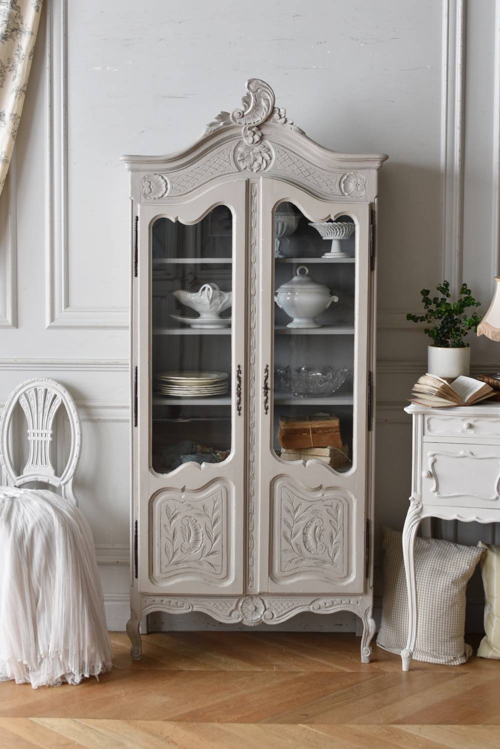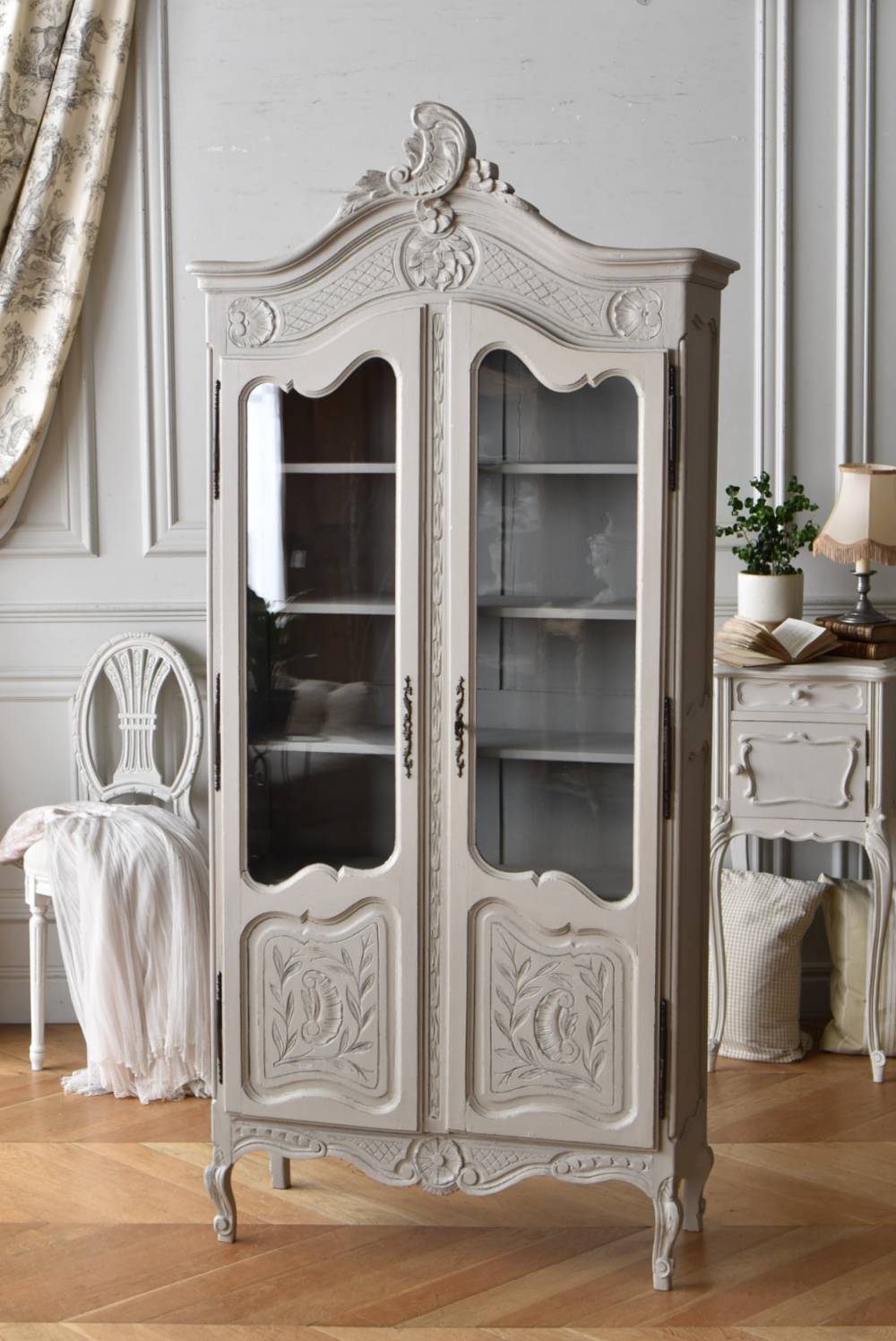 フランスのアンティークガラスキャビネット。