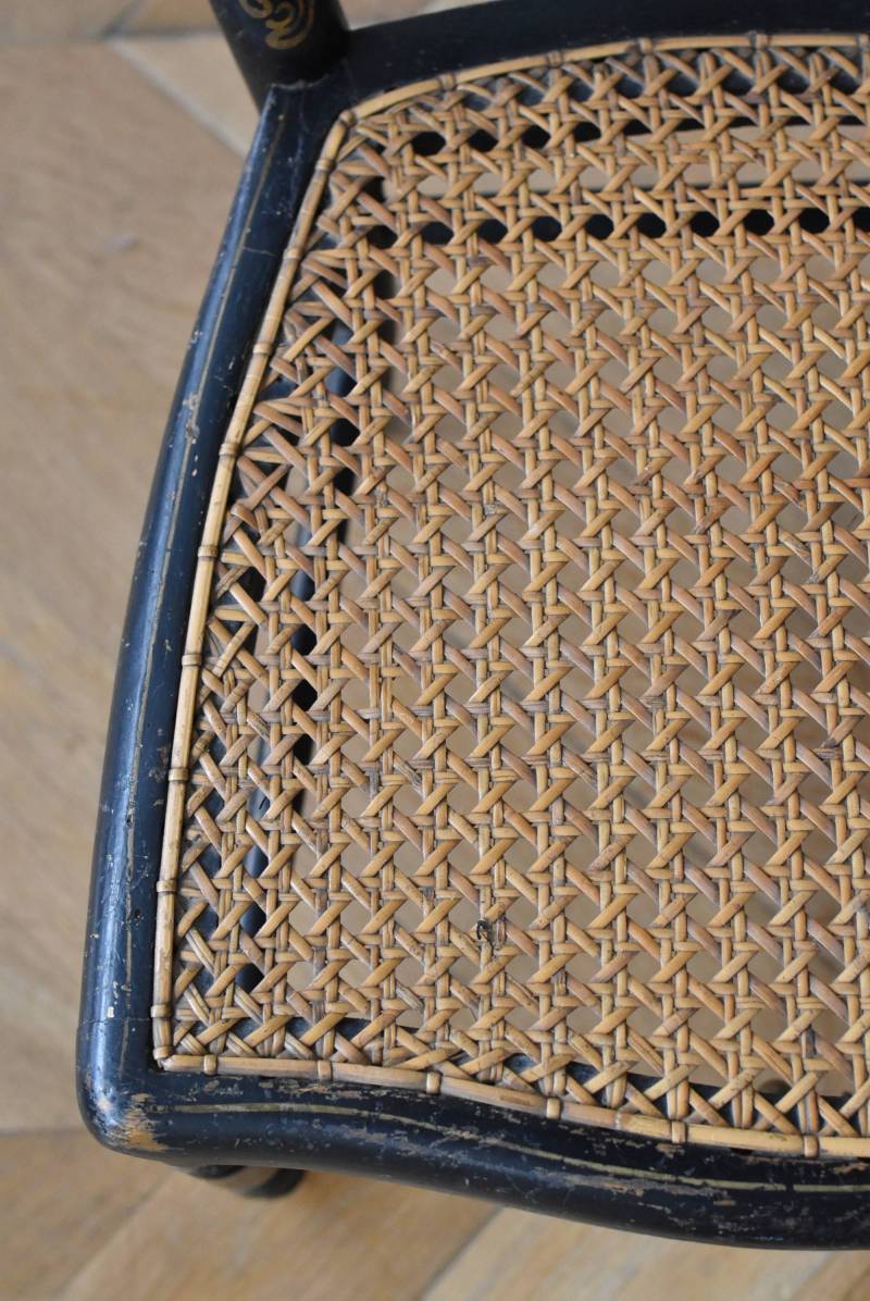 座面の籐張り部分も買い付け当時のままのものですが、しっかりとハリがあり、目立つような大きな穴あきなどはありません。 W 約33cm