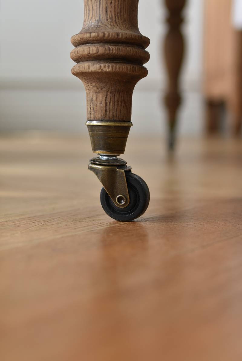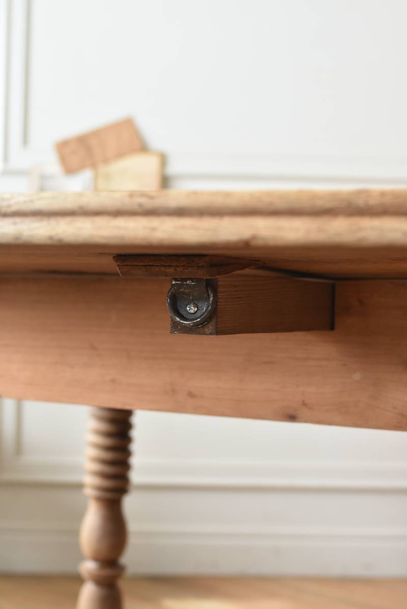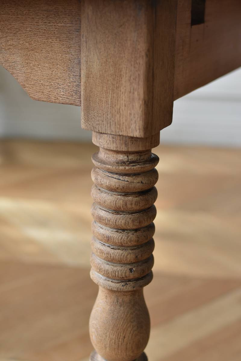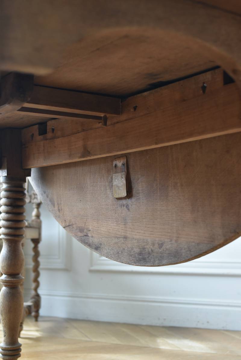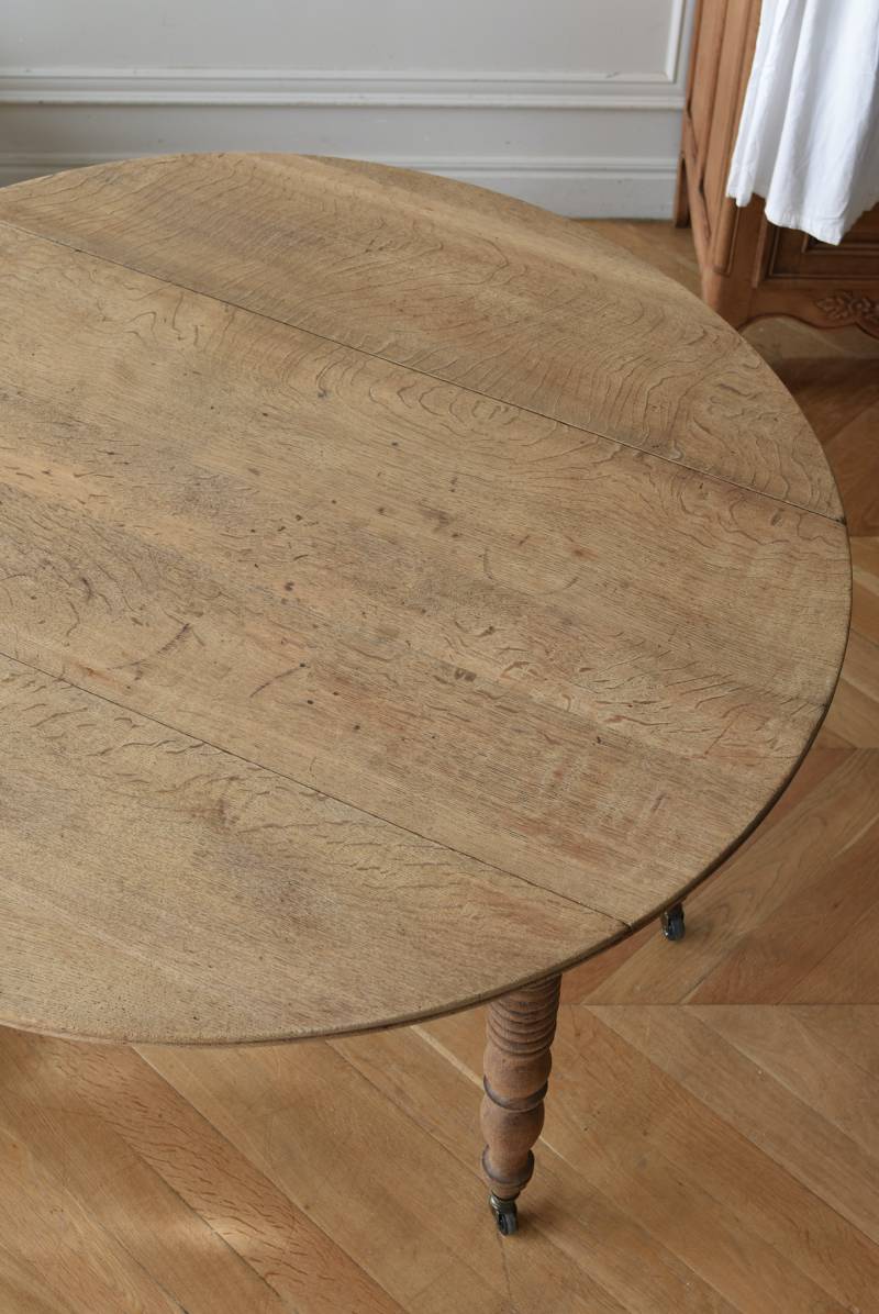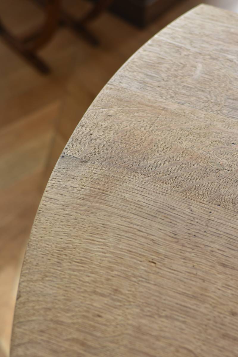 フランスのバタフライテーブル。 木の温もりを感じられる素朴な表情で、ラフすぎない程よい重厚感が魅力的。まあるい天板に凹凸のはっきりとした脚元が目を惹き、独自の存在感を発揮してくれるデザインとなっています。両サイドの天板は蝶々の羽のようにパタンと折り畳む事ができ、シーンに合わせて天板の広さを変えてお楽しみいただける機能的な一面も。脚先にはキャスターが取り付けられており、移動もスムーズに行えます。 ダイニングテーブルとしてはもちろん、片面を折り畳んでコンソールテーブルとしてアレンジするのもおすすめのアイテムです。 W 約129cm D 約127cm(折り畳み時 約61cm) H 約75.5cm 幕板までのH 約62cm 搬入経路について こちらの商品の配送について