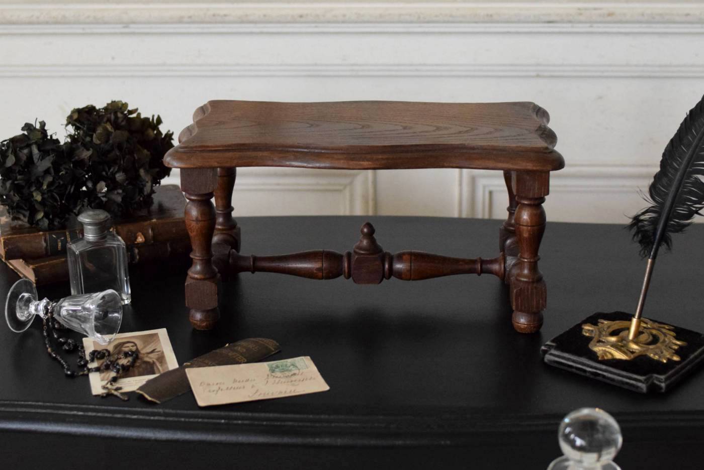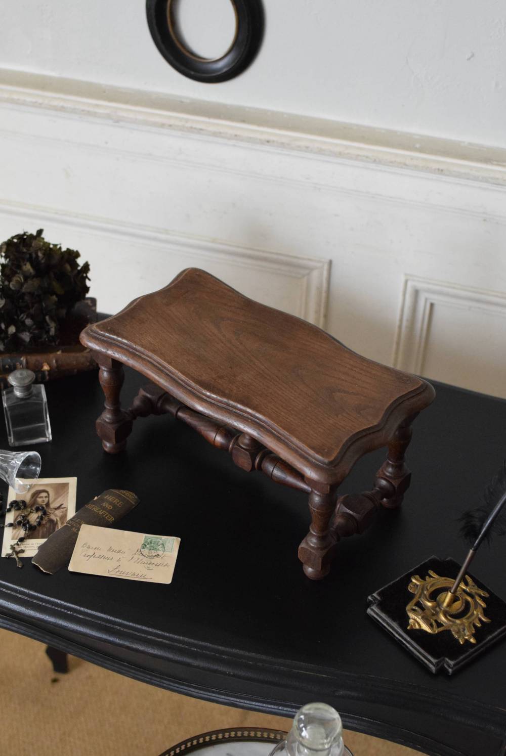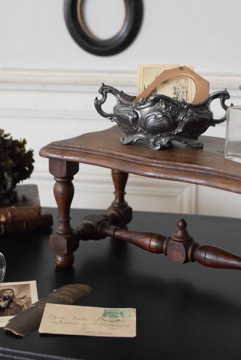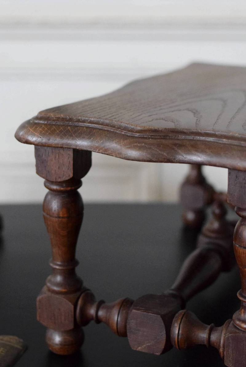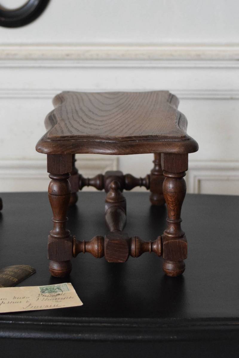 フランスのディスプレイスタンド。 クラシカルな脚元のデザインが印象的で、堂々とした風格のある姿。緩やかに縁取りされた天板に雑貨などを乗せ、ディスプレイを楽しんでいただけます。飾ったものを引き立てる懐の深さも備えつつ、かっちりとした厳格な雰囲気で、スタンドそのものも絵になる佇まいです。 同じデザインのものがもう一点ありますが(ディスプレイスタンド.33B)木の風合いや色合いなどが異なります。こちらはややダークカラーではっきりとした木目の表情が魅力的です。 W 約32.5cm D 約18cm H 約16.3cm 天板面積 約29.5× 約14.7cm