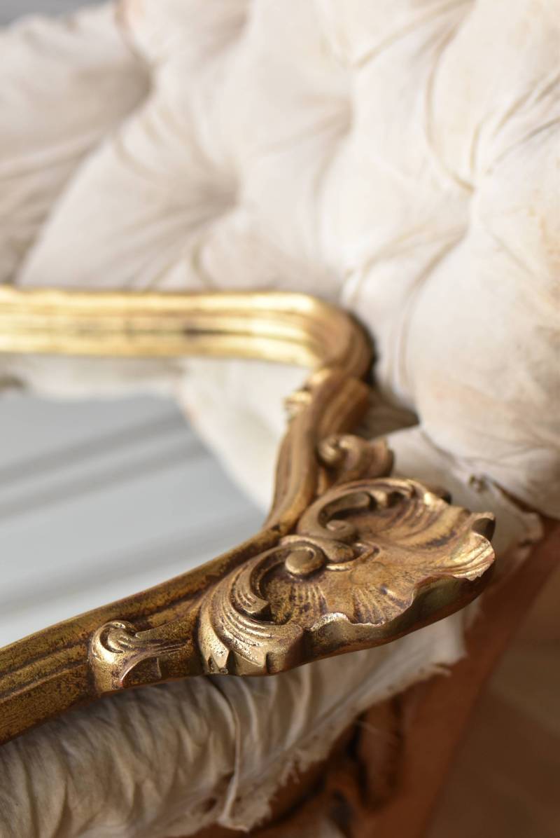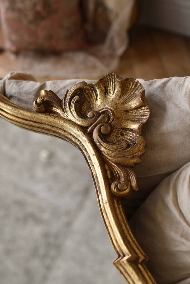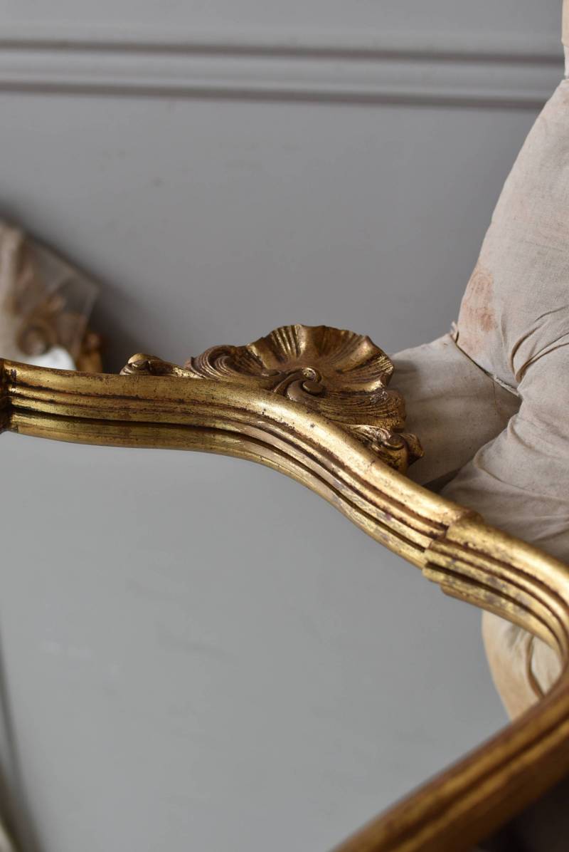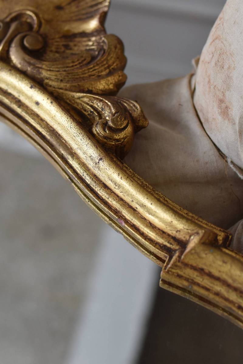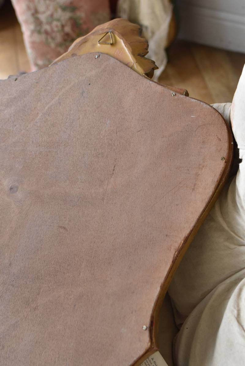 壁面にパッと明るい印象をもたらしてくれるフレンチミラー。 比較的大きめのサイズとなり、程よく幅のある縁取りの立体的かつエッジの効いた形状で囲まれ、洗練された美しさを感じられます。上部に施された優しげなシェル装飾がバランス良く、深みのあるゴールドカラーが品格のある姿です。 鏡面は新しいものに交換しています。奥行きが浅めのデザインで、しなやかなシルエットによって豊かな個性をもたらし、実用しながらもインテリアとして優雅な雰囲気を演出してくれます。 W 約50cm D 約4cm H 約79.5cm 鏡面積 W約44.5cm×D約60cm 重量 約3.7kg こちらの商品の配送について