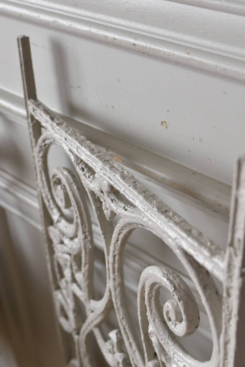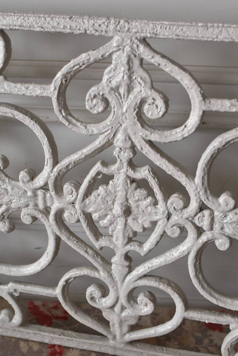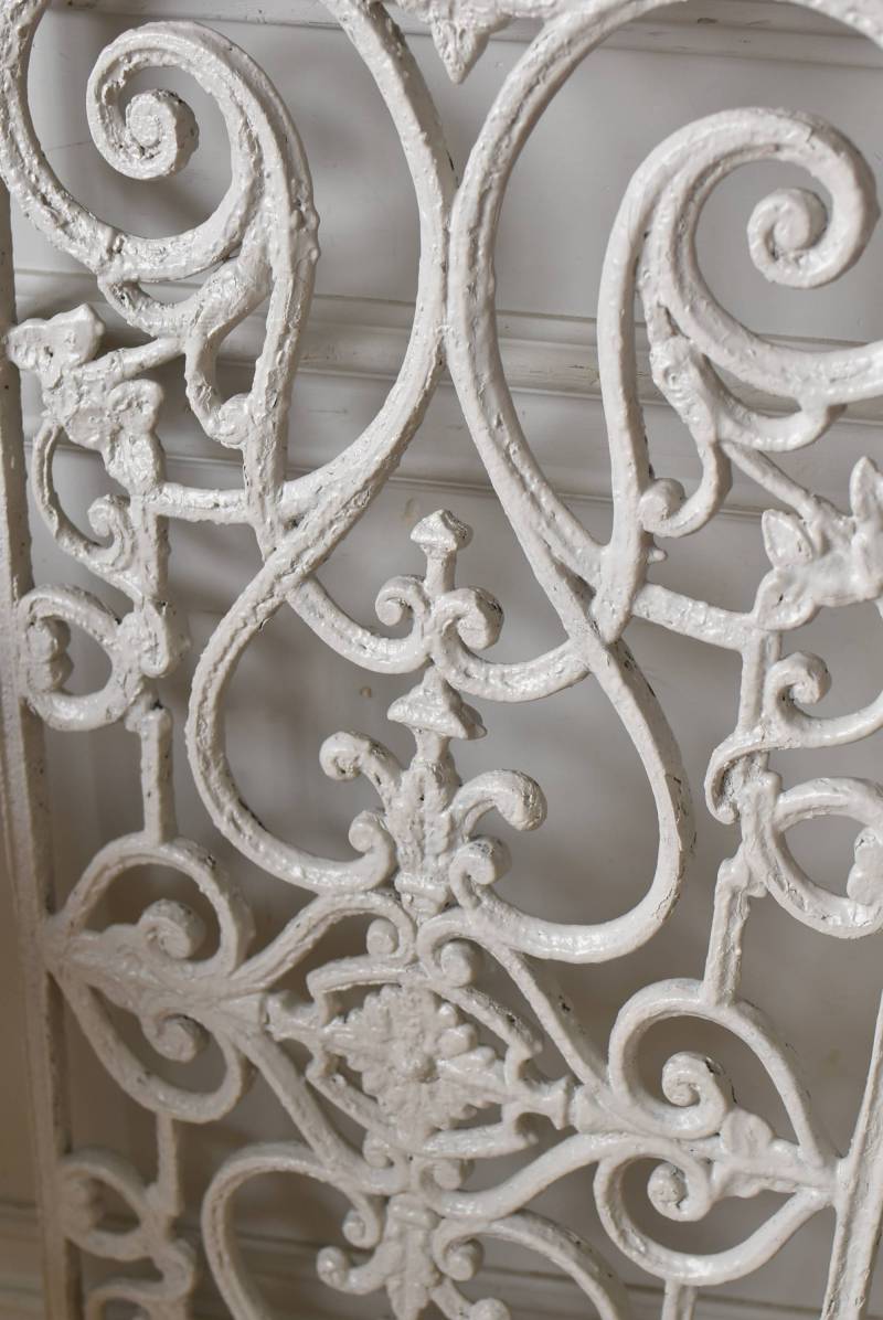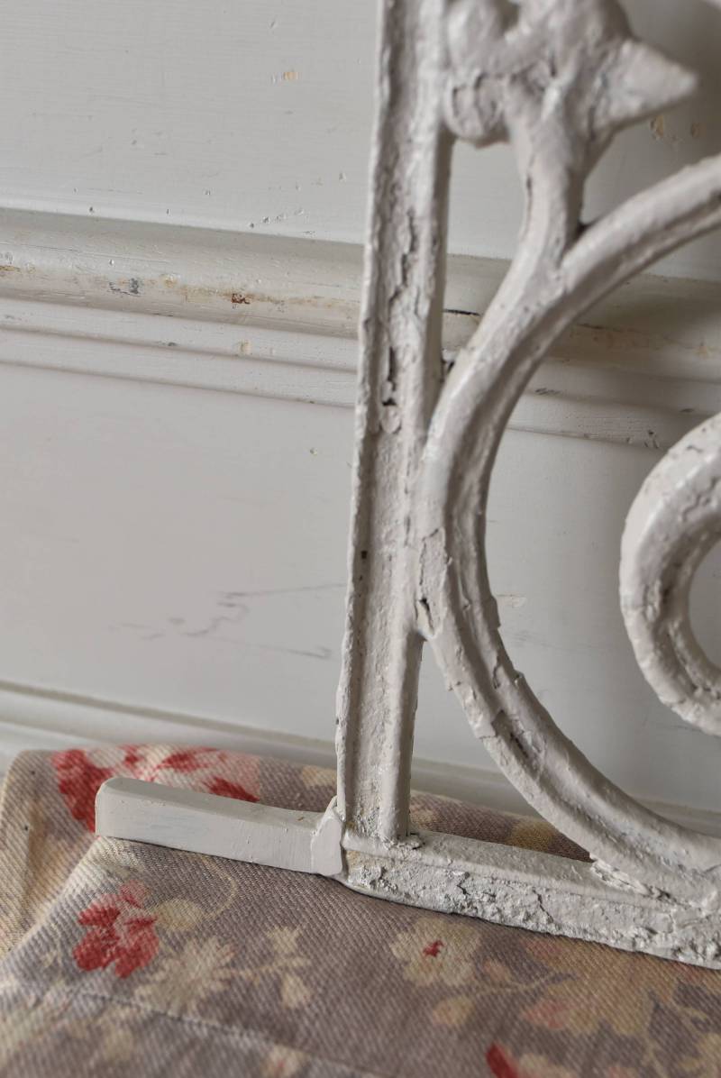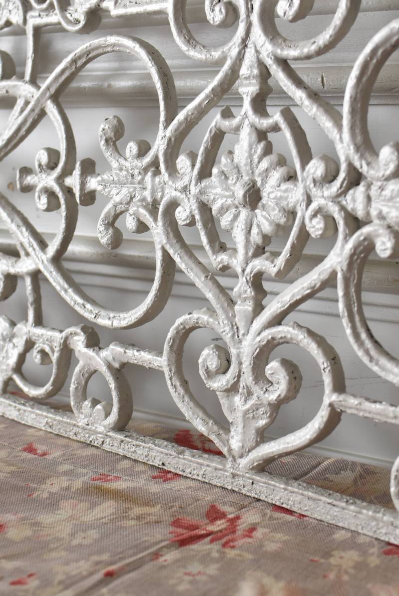 フランスのアイアンパネル。 有機的かつしなやかなラインで構成されたシンメトリーなデザインで、さりげないハートのモチーフが連なっているような可憐な雰囲気が漂います。流動的な姿は豪華ながらも程よい抜け感をもたらしてくれ、壁面に立て掛けているだけでも自然モチーフならではの優しげな印象を受けます。 何度も塗装を重ねながらも受け継がれてきた趣のある表情が楽しめる、縦横どちらでも使用できるデザインです。それぞれでの販売となりますが、同じデザインのアイアンパネル.7があります。 W 約106.5cm (装飾部のみW 約91cm) D 約1.5cm H 約38cm 重量 約12kg