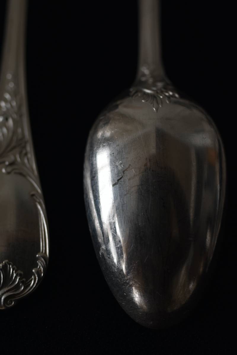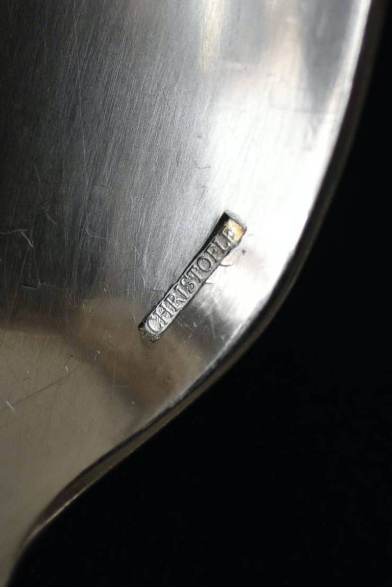 "Christofle"の刻印と"CCマーク(12 本のカトラリーを製造するのに使用した銀の量がグラムで示されたもの)"が刻まれています。