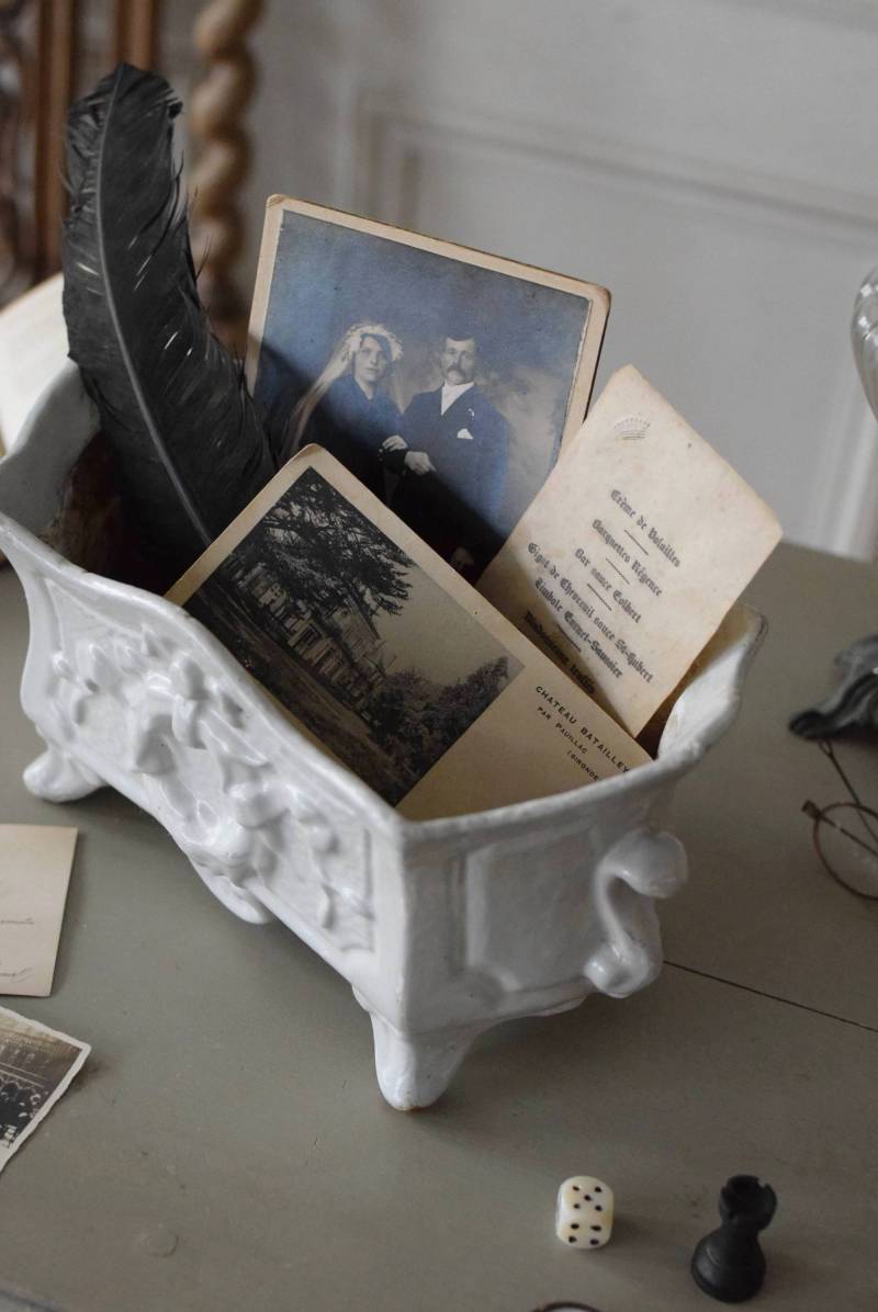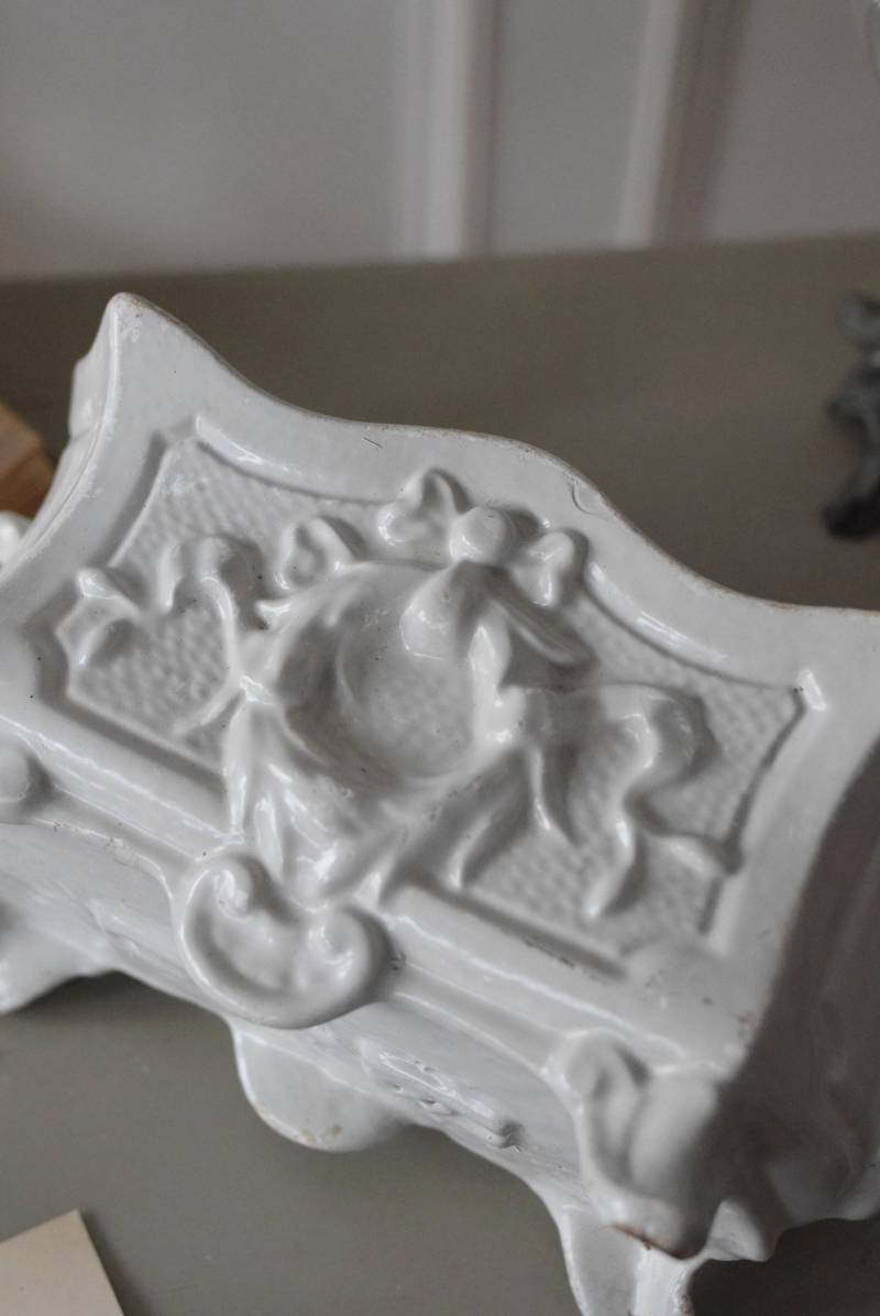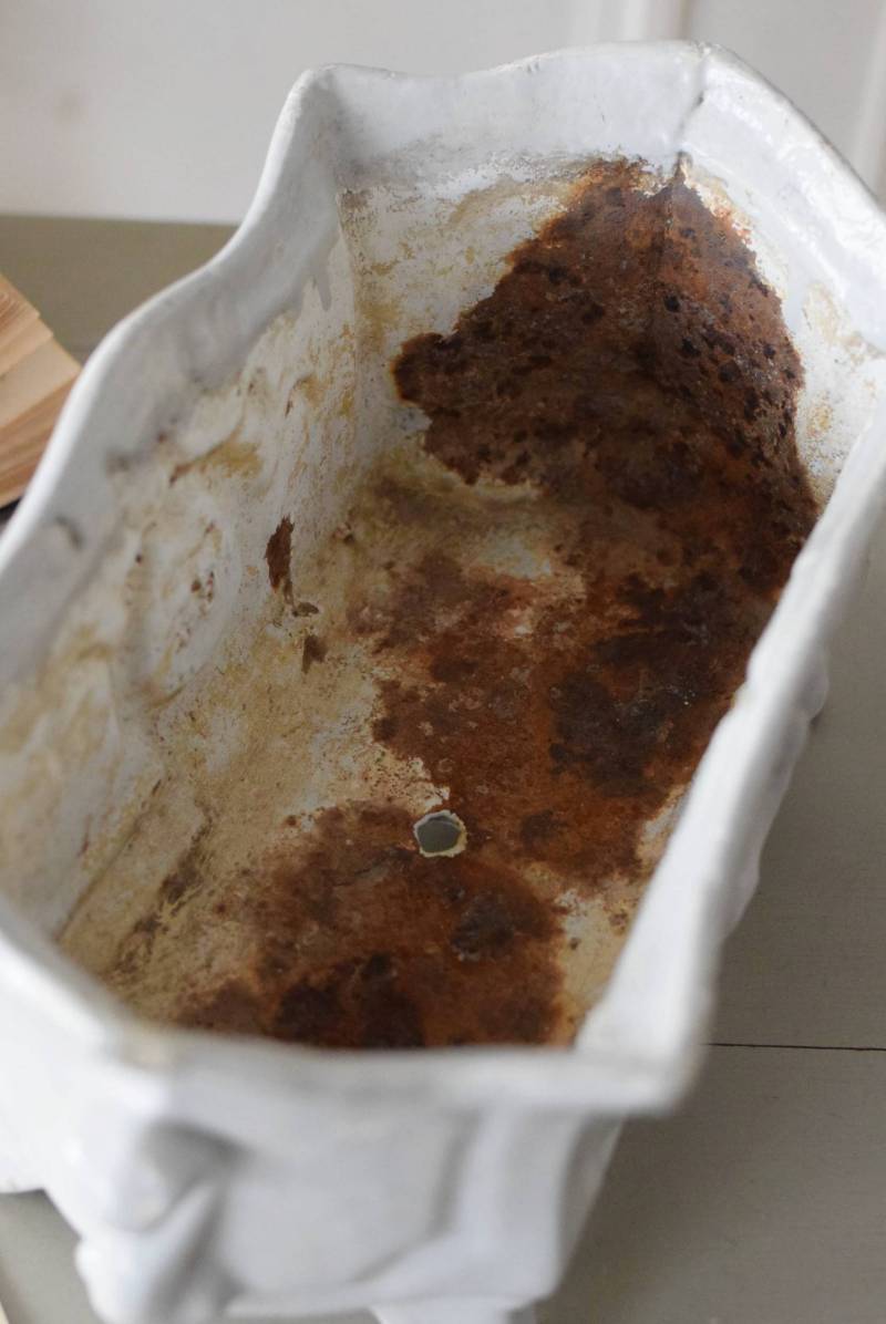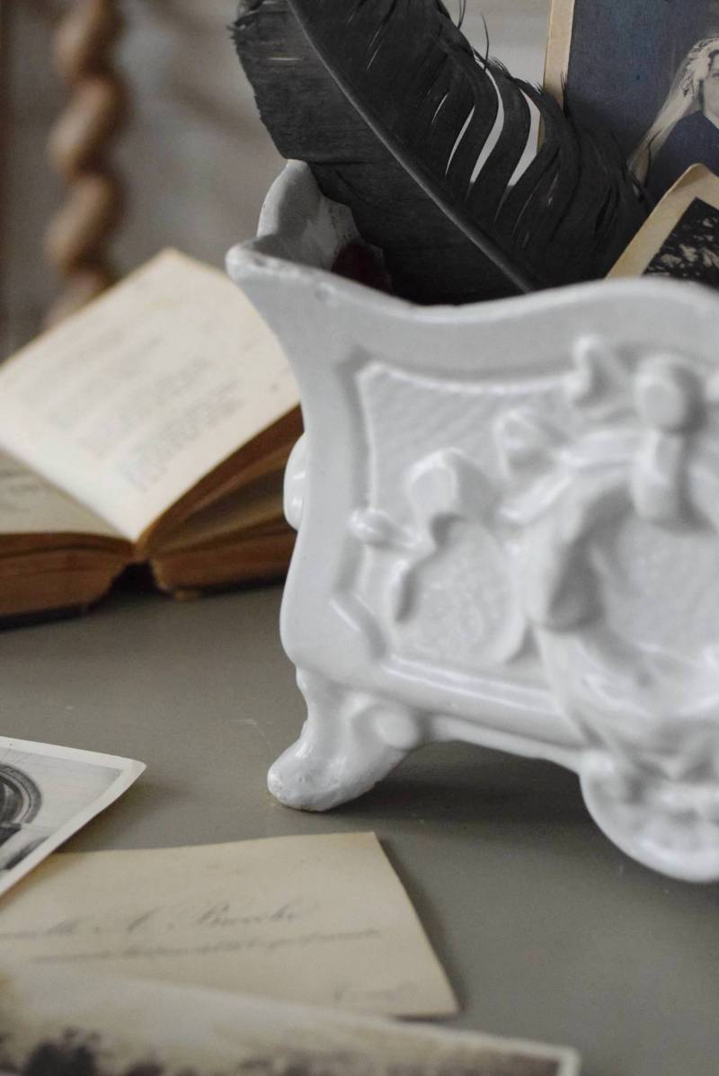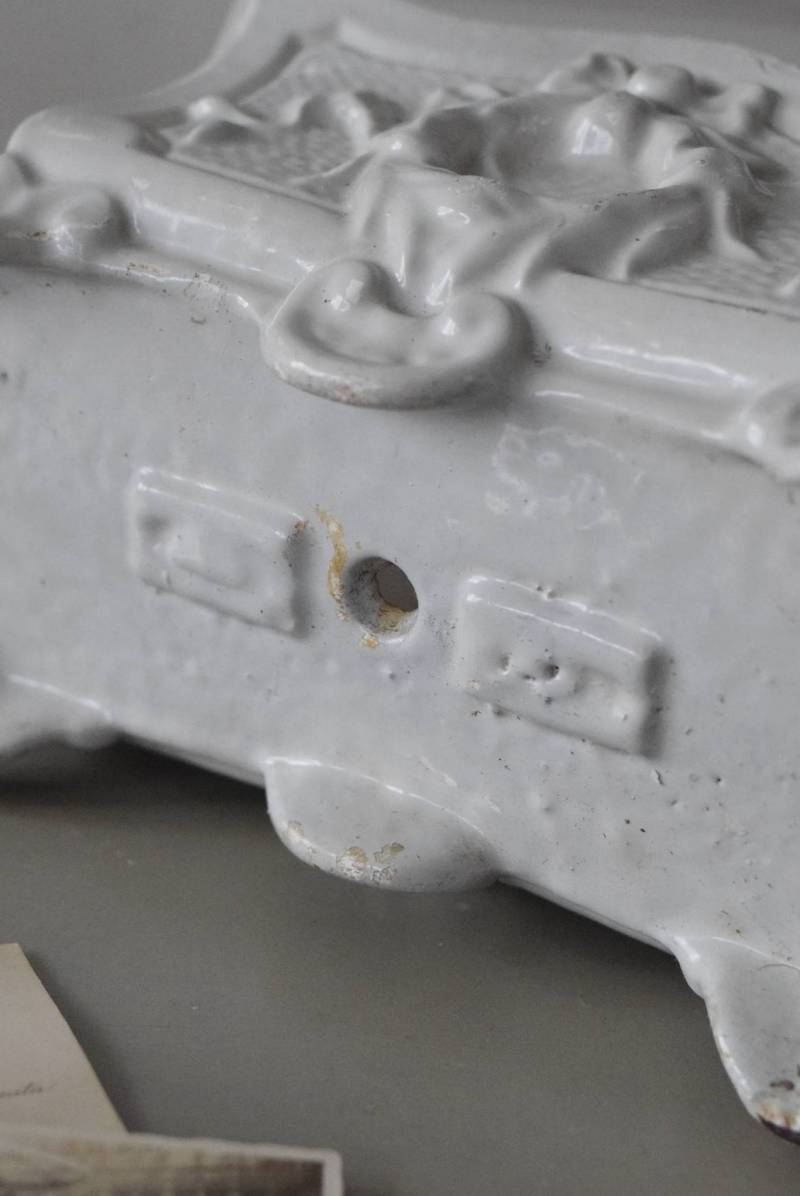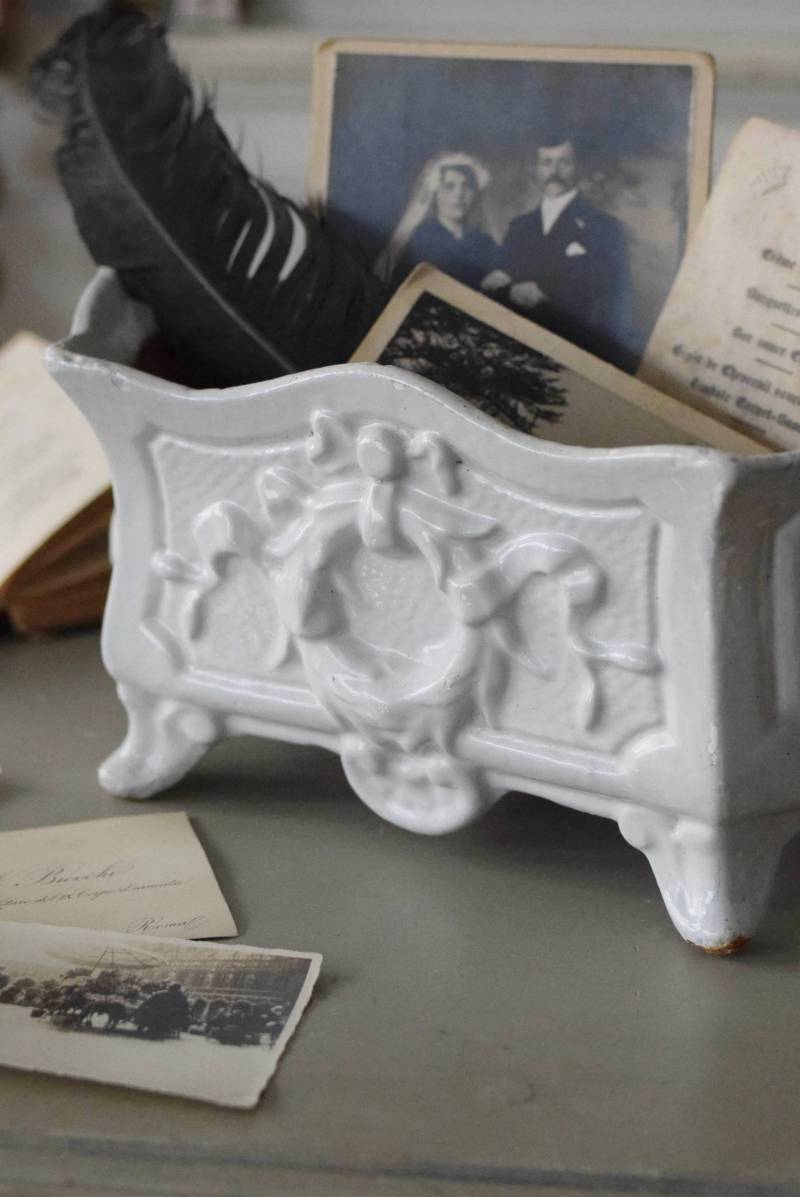 フランスのジャルディニエール。 アイアンで出来た重厚な姿ながら、厚めのホワイトペイントが施され、まるで陶器や琺瑯のようにも感じられる艶やかで上品な質感です。立体的なリボンやリースのようなモチーフもとても印象的で、どの角度から見ても見応えのある美しいデザイン。 実際にプランターとして使われてきたもので、内部には錆が多く見られます。アイアン製ですのでしっかりとした重さと安定感があり、屋内外問わずアレンジをお楽しみいただけます。 W 約25cm D 約14cm H 約13cm 内寸 約21×10.5×10cm