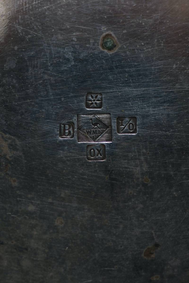(中央)商標:ダチョウモチーフ(上)製造工場:花モチーフ(右)銀メッキの厚み:I/O(下)酸化仕上げ:Oxidized(左)素材:ブリタニアメタル(錫):B