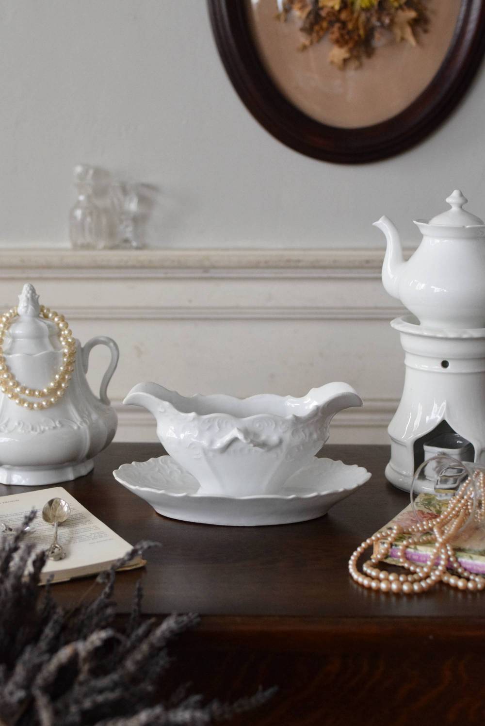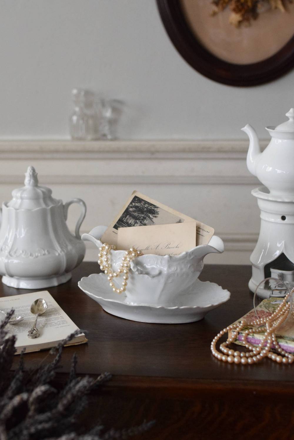時を重ねた風合いも感じられつつ、清楚な佇まいで、ディスプレイに活躍しますね。 器とソーサーが一体となったユニークな作りで、カードなどを立てたり、小物入れとしてもおすすめです。 W 約21cm