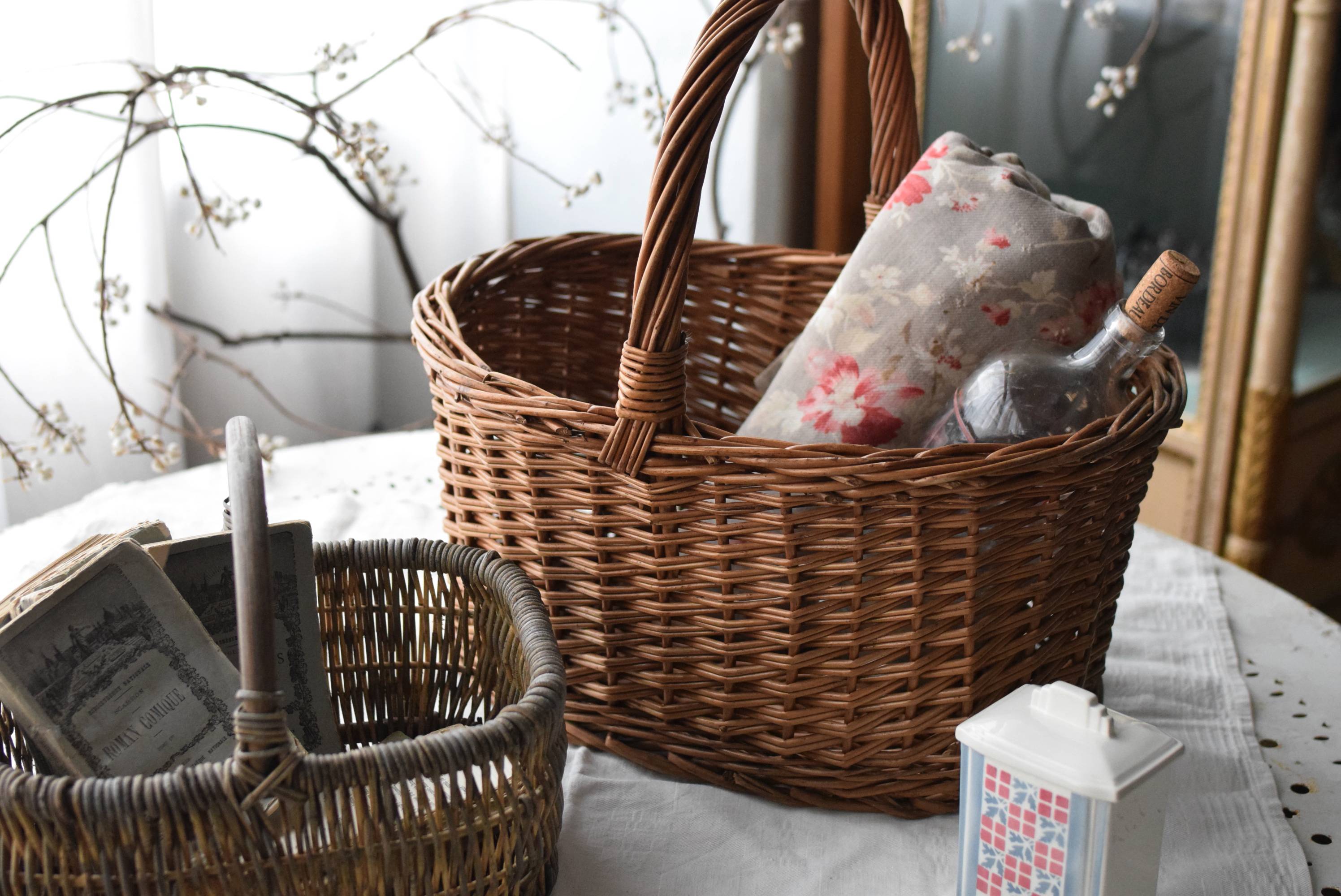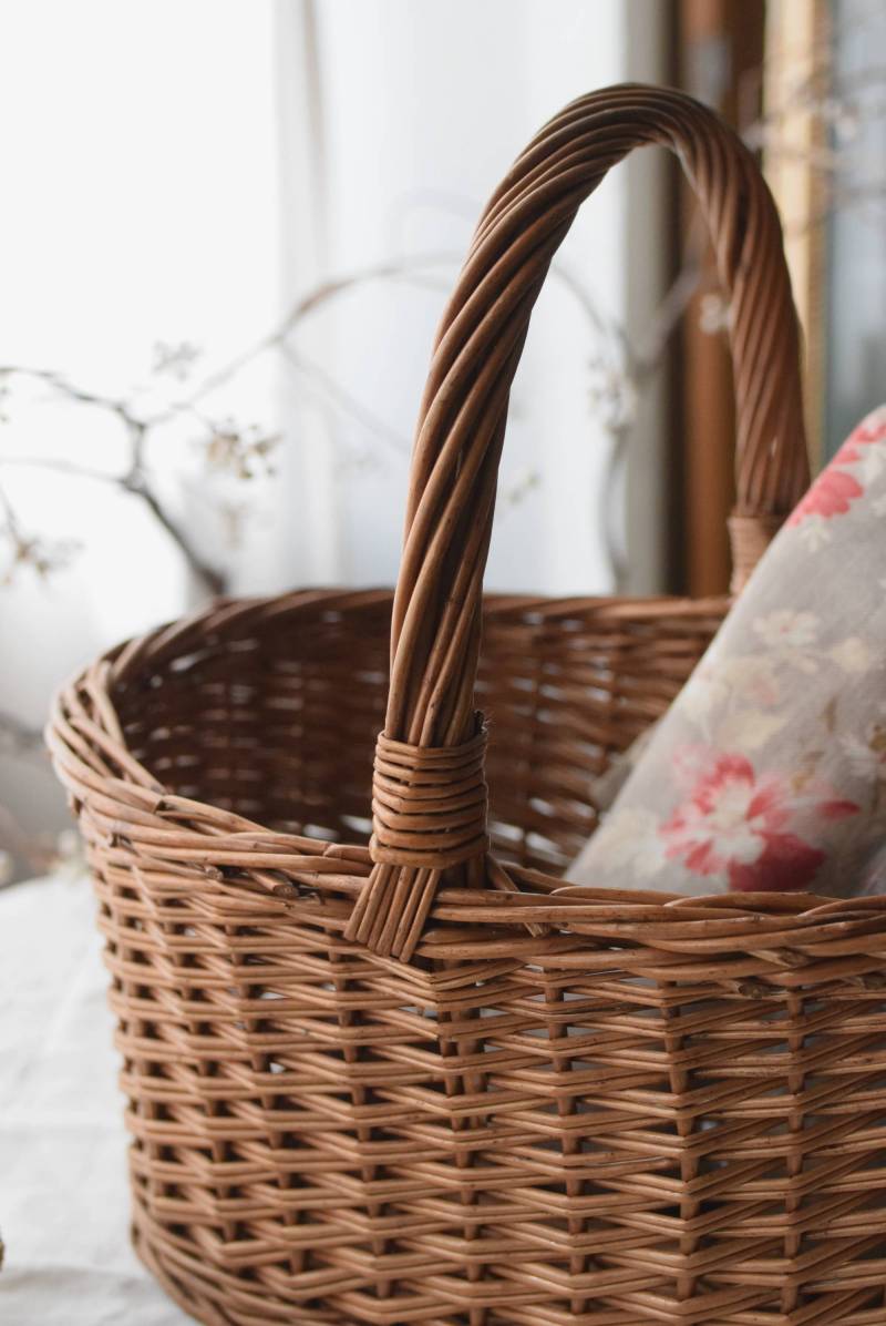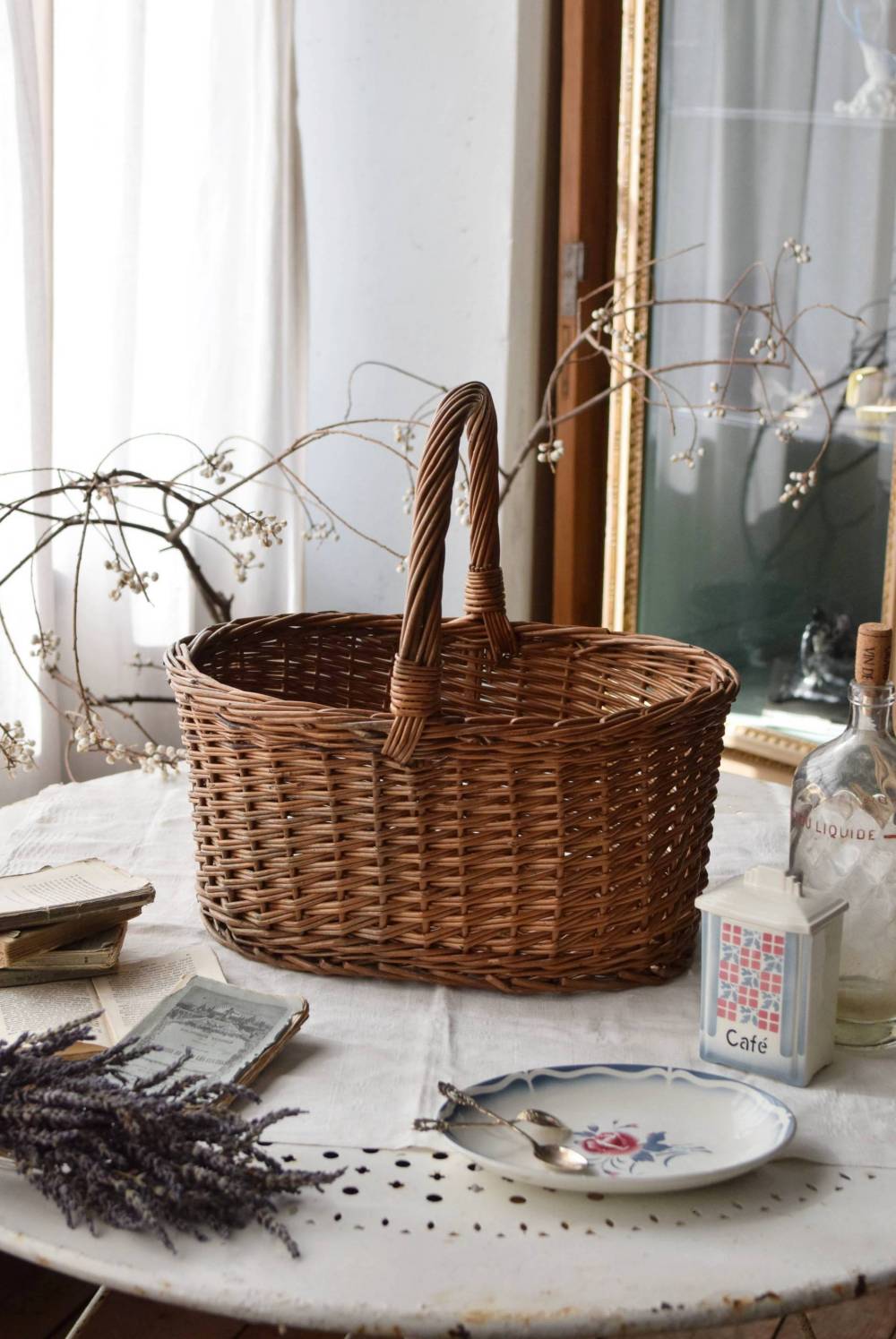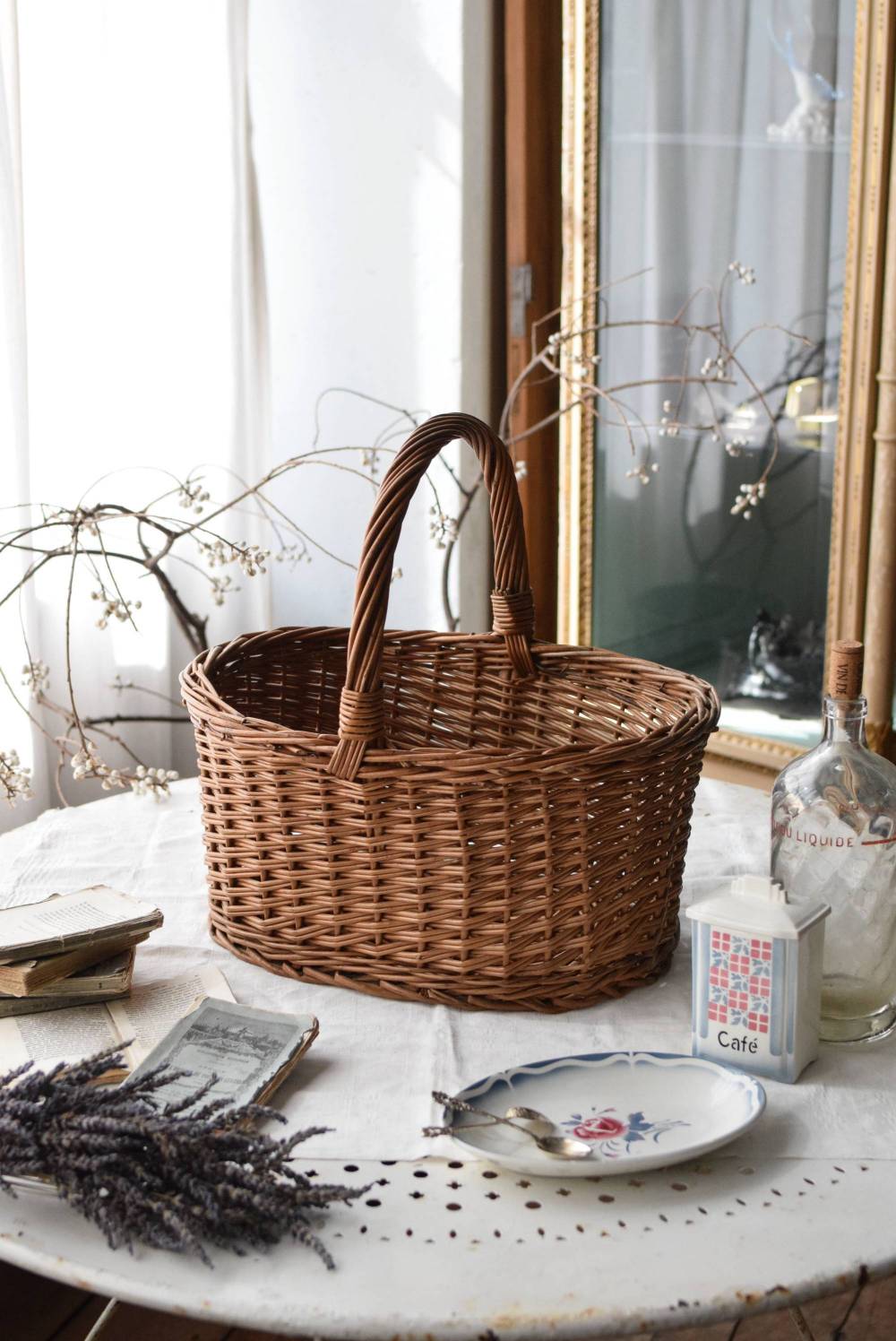 フランスのナチュラルバスケット。 すとんとした寸胴なオーバル型で、安定感のある佇まい。持ち手や縁部分は太めの材でしっかりと、側面は細めの材で細やかに編まれているので、それぞれ異なる表情が生み出され、デザインにメリハリをもたらしてくれます。 ナチュラルな素材感が温かさを醸し出し、シンプルに飾るだけで絵になります。 浅すぎず深すぎず、程よい深さのある形状で、見せる収納にもおすすめです。 W 約41.5cm D 約30.5cm H 約40cm 深さ 約19cm