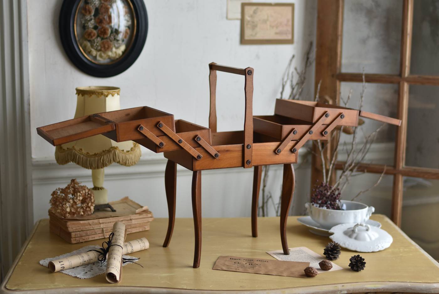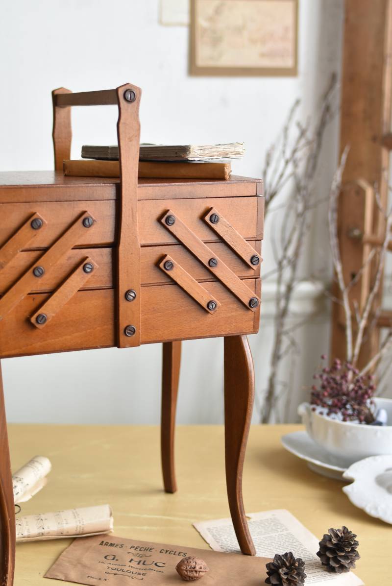 小さめのサイズ感が可愛らしいフランスのソーイングボックス。