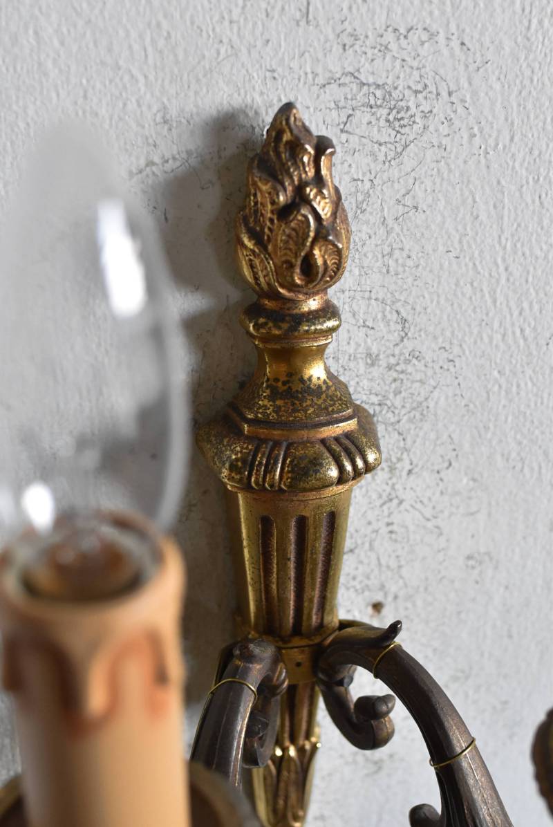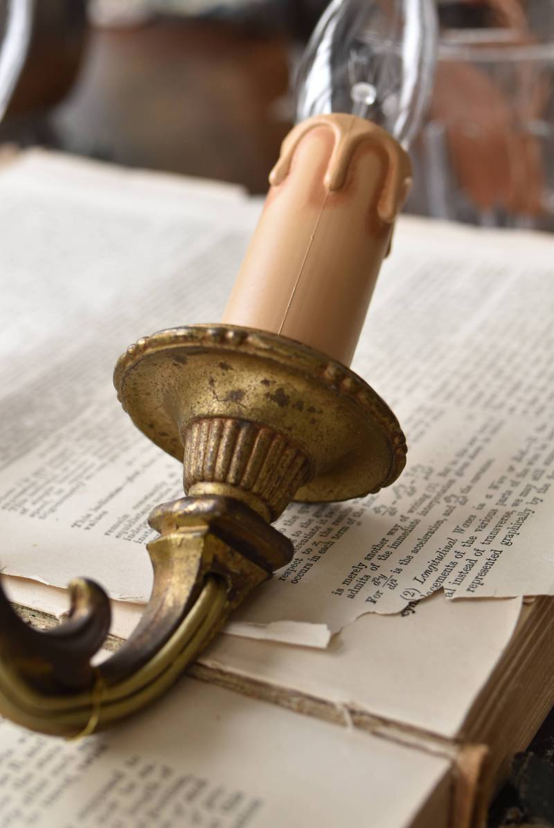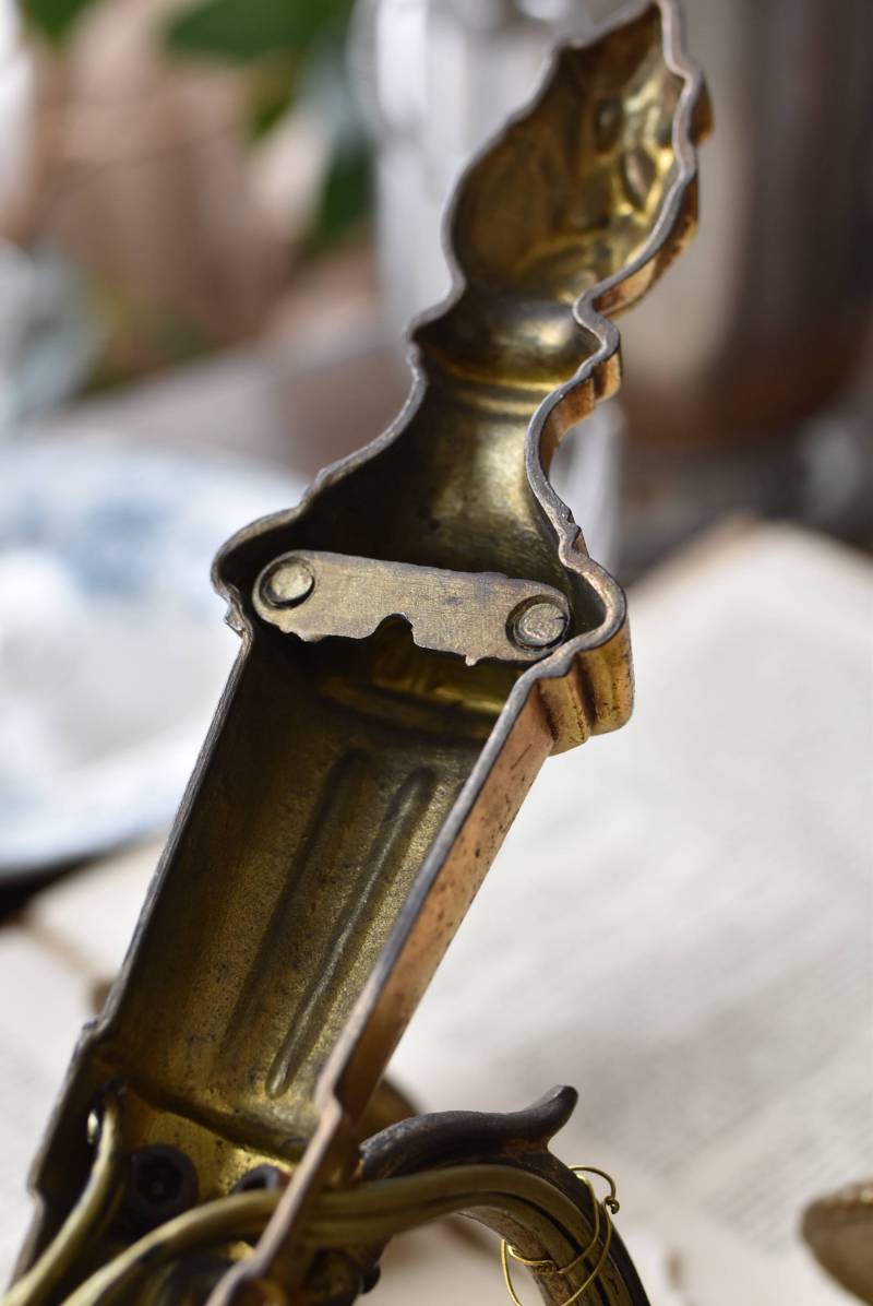 松明をモチーフとしたような土台からしなやかに伸びたアームはしっかりと厚みのあるシルエットとなり、流れるようなしなやかさと力強さが上品にまとまった品格を持ち合わせたデザインです。くすんだゴールドの塗装は経年による独特な風合いが楽しめ、唯一無二な雰囲気を演出してくれます。