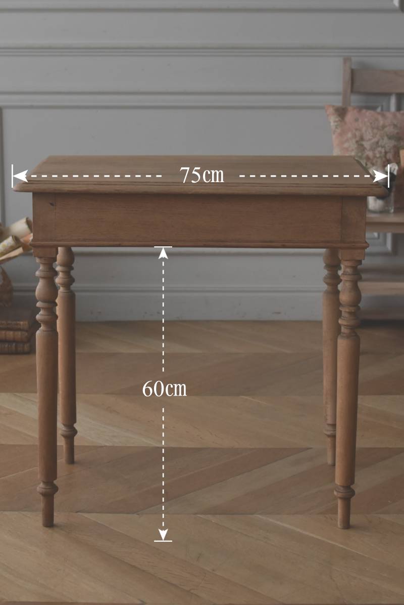 作業用デスクとしても大きすぎない使いやすいサイズ感となり、お店の什器としてなど幅広いシーンで活躍してくれそうです。 W 約75cm