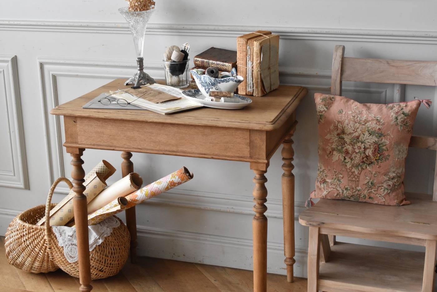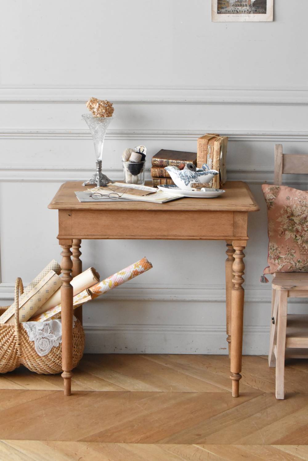 スリムな脚が凛とした佇まいのフレンチテーブル。