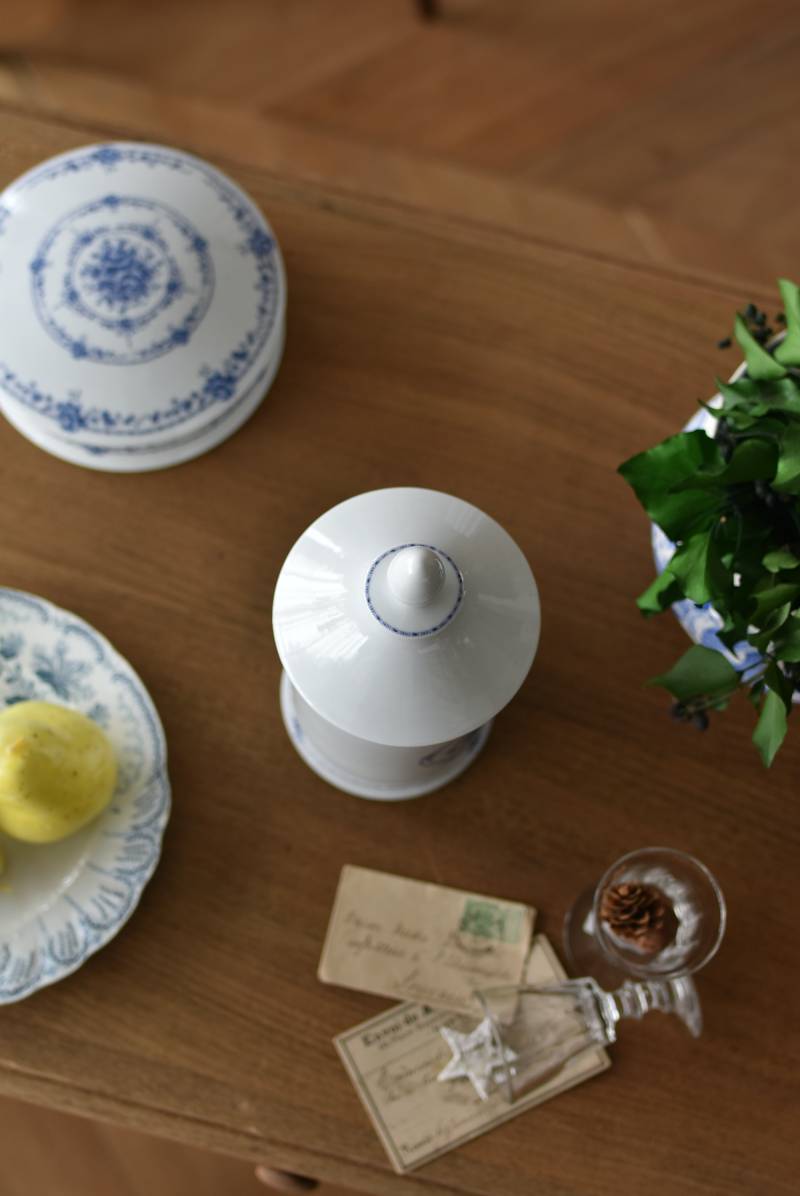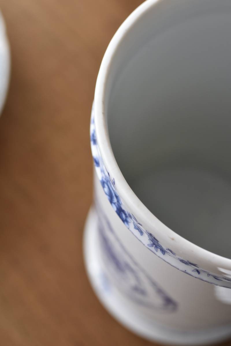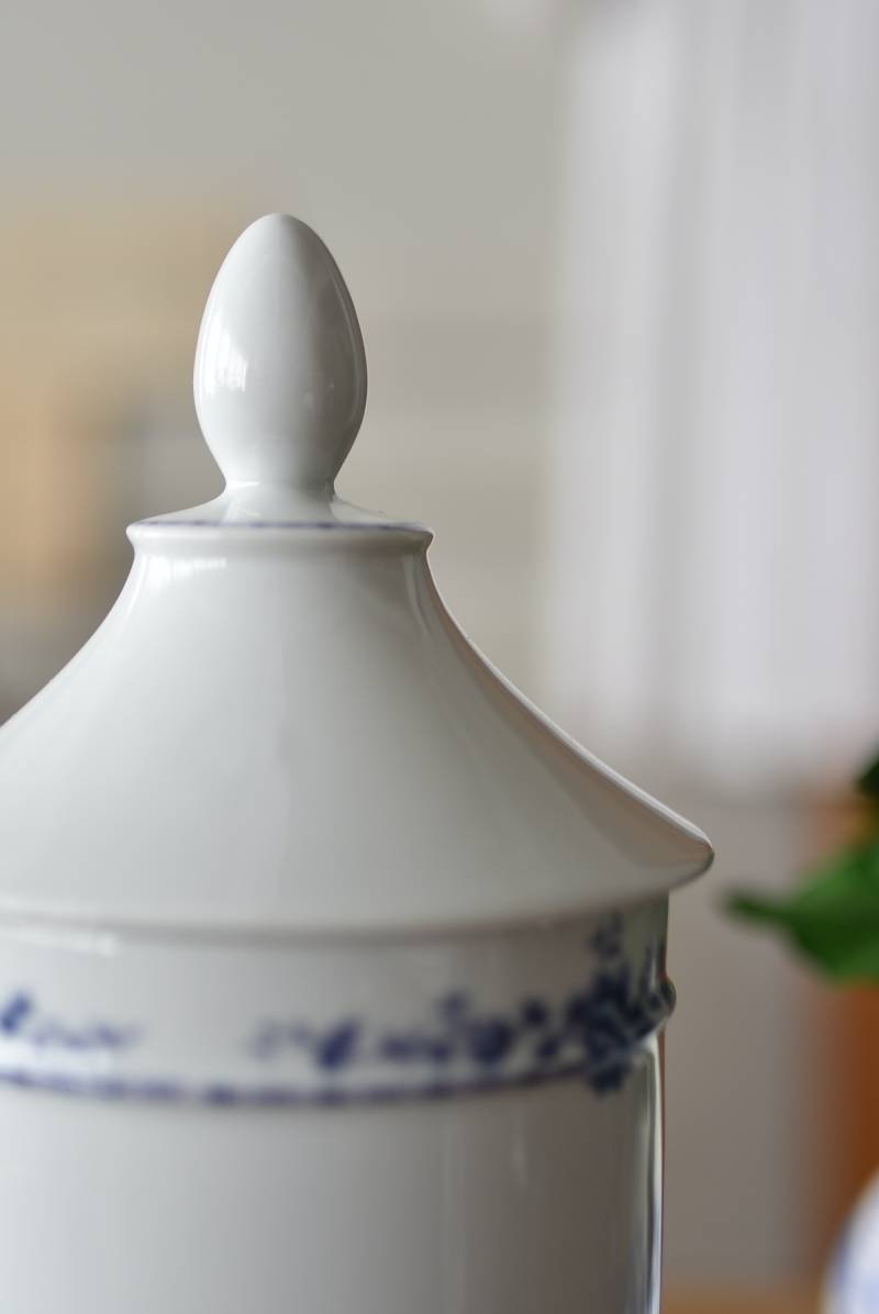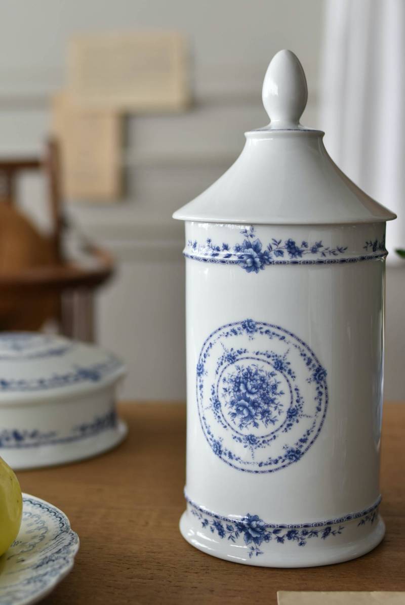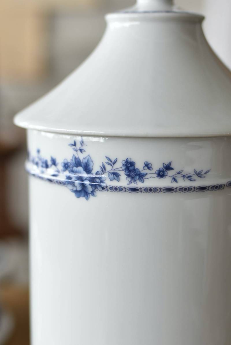フランス・Limoges(リモージュ)のアンティークポット。 透き通るような白磁に澄んだブルーの模様が清楚で上品な印象の佇まい。艶やかな質感のボディはすらりとした高さのあるシルエットで、表面にあしらわれた繊細なお花の絵柄がエレガントな空間にも映える可憐なデザインとなっています。底裏には"Limoges"france"としっかりバックスタンプも押されている一品に。 大きすぎない程よいサイズ感で卓上ディスプレイとしても飾りやすく、スティックタイプのインセンスなどの長さのあるアイテムを収納するポットとしても活躍してくれるアイテムです。同じシリーズの小物入れと揃えてのご使用もおすすめです。 直径 約11.5cm H 約25cm 深さ 約16.5cm 口径 約9.5cm