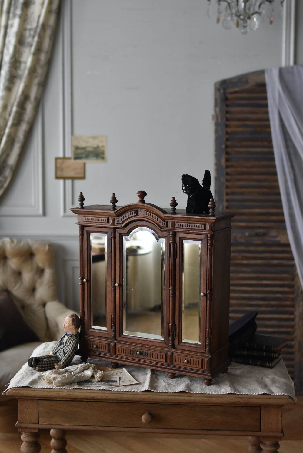 通常サイズをそのままギュッと縮めたような精巧な作りが魅力で、厳かな雰囲気をそのままに、ドール用の家具としても活躍してくれるクラシカルなアイテムです。 W 約54cm