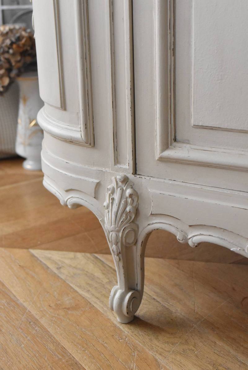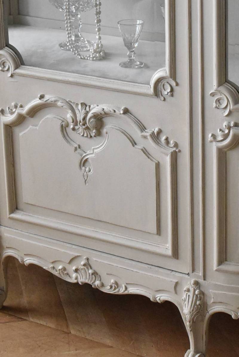 フランス1930年頃のペイント3面ガラスキャビネット。
